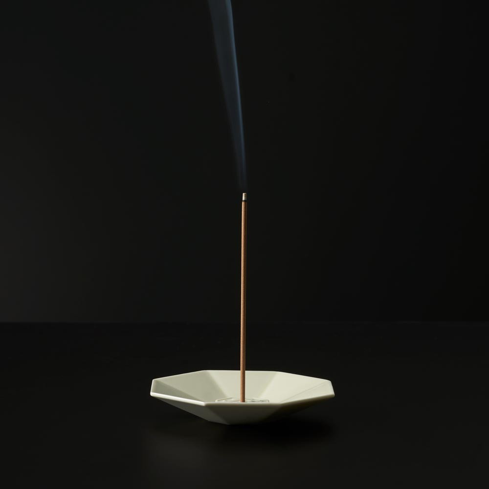 オクタゴン型の香皿はモダンな有田焼を提案する窯元、224porcelainが製作を担っていまして、他に類をみない新しいモノづくりを挑戦しています。シンプルなものなのでお部屋にも馴染みやすく、手入れもし易い形になっているので使い勝手も良いんです。