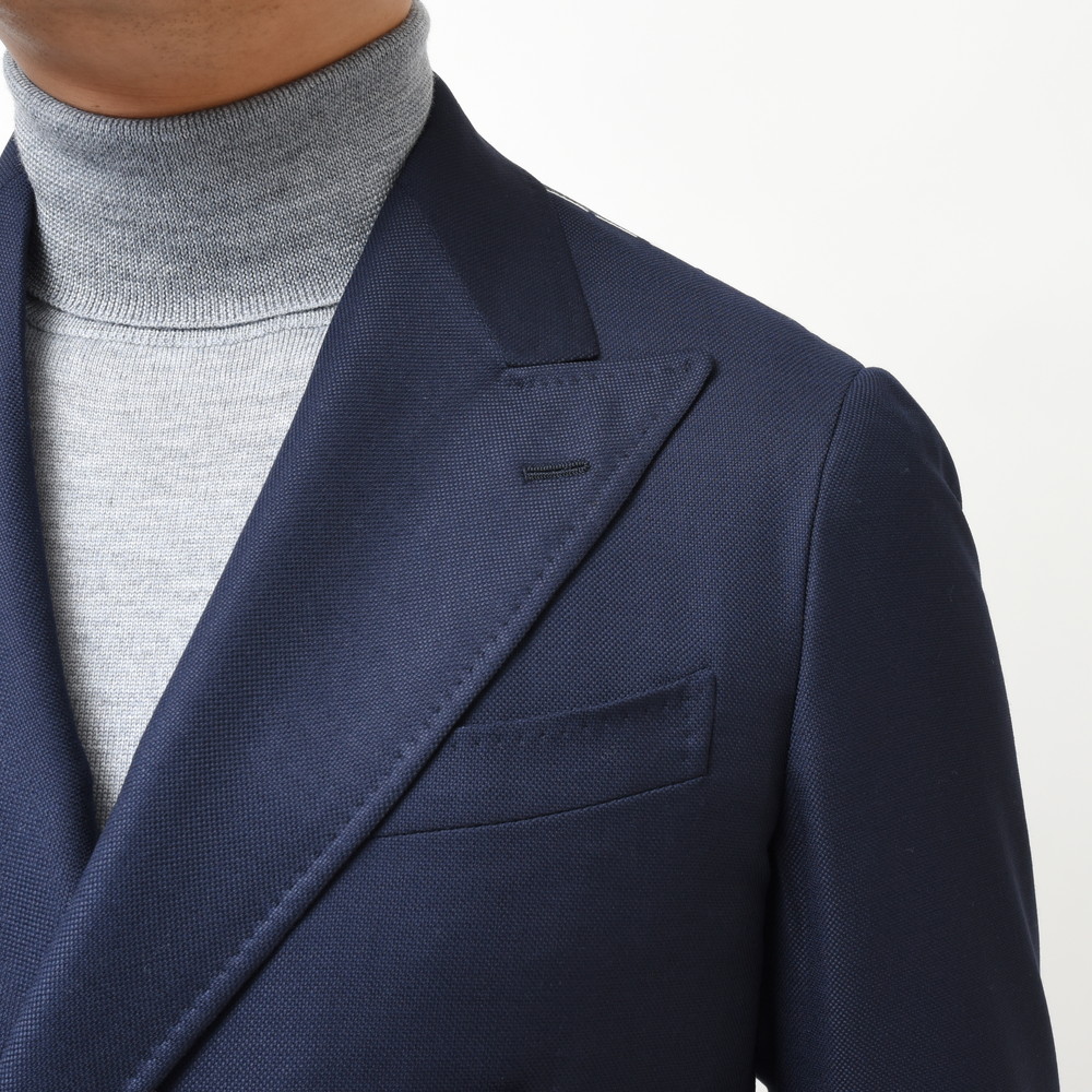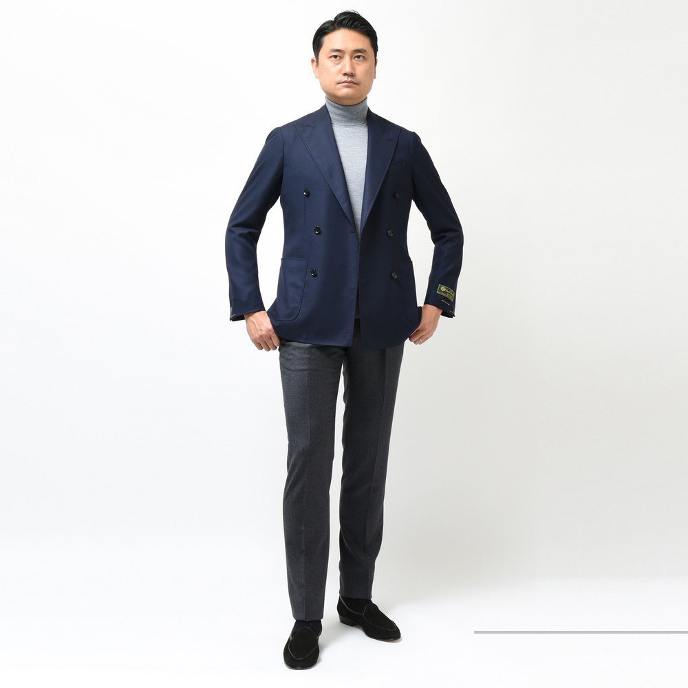 gujiの為に用意していただいた定番Loro Pianaのホップサック生地のネイビージャケットに、今シーズンよりダブルブレストが仲間に加わりました!