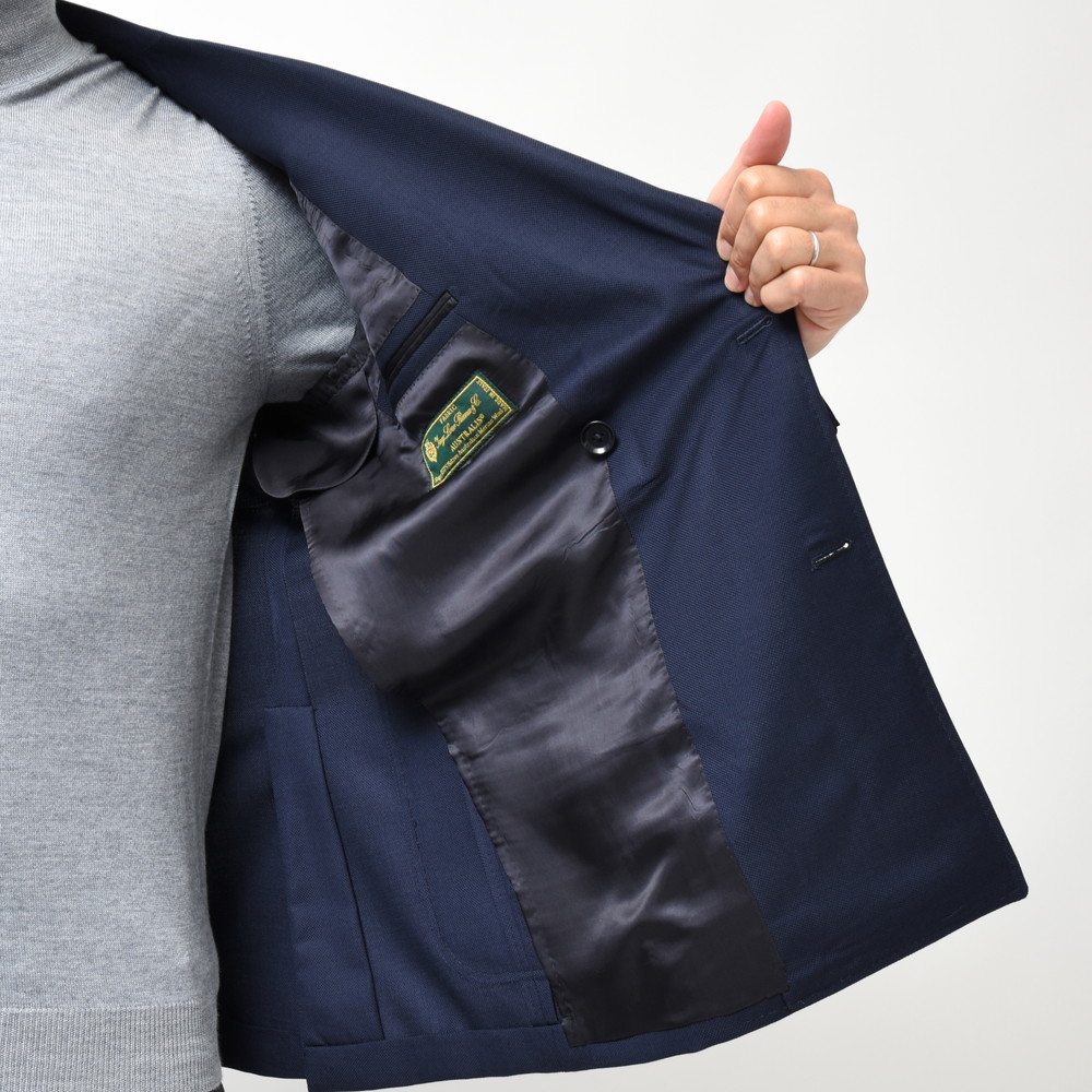 RING JACKET(リングヂャケット)×guji(グジ)のオールシーズン対応、究極のベーシックネイビージャケットという事でご用意しているのがこちらのLoroPianaロロピアーナ社謹製SUPER150'sウールホップサックです。