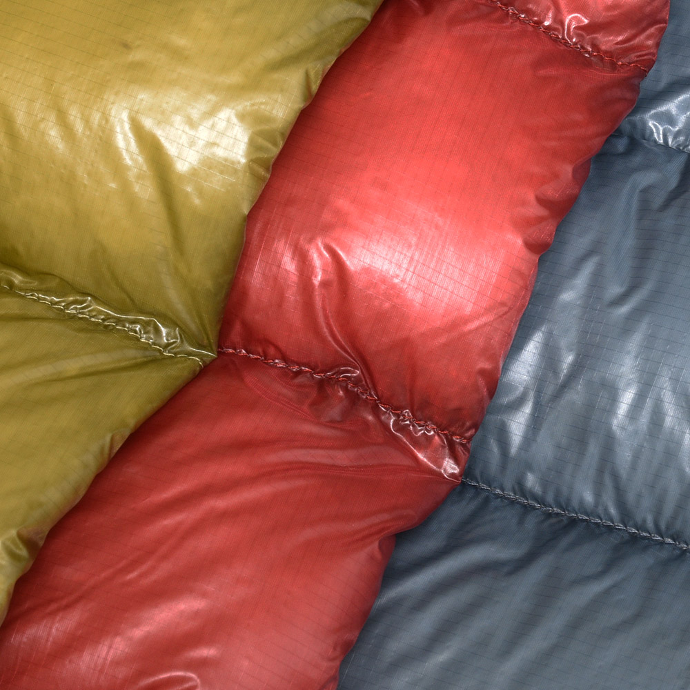 (ナイロン素材に透け感があり、インジェクション製法で封入されたダウンが透けて見えることがあります。)