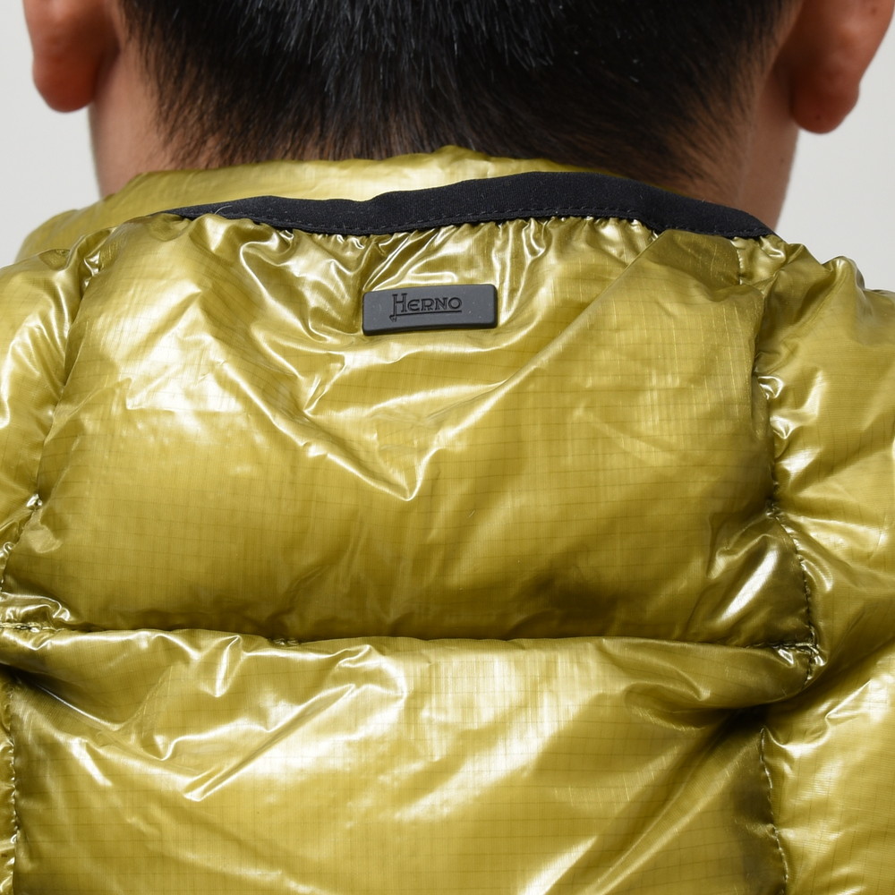 HERNO(ヘルノ)が誇る超軽量ナイロンを用いたダウンベスト、防寒性の高さもさることながら、やっぱり着ていることを忘れるくらいの軽さがあるところが最大の特徴でしょうか。