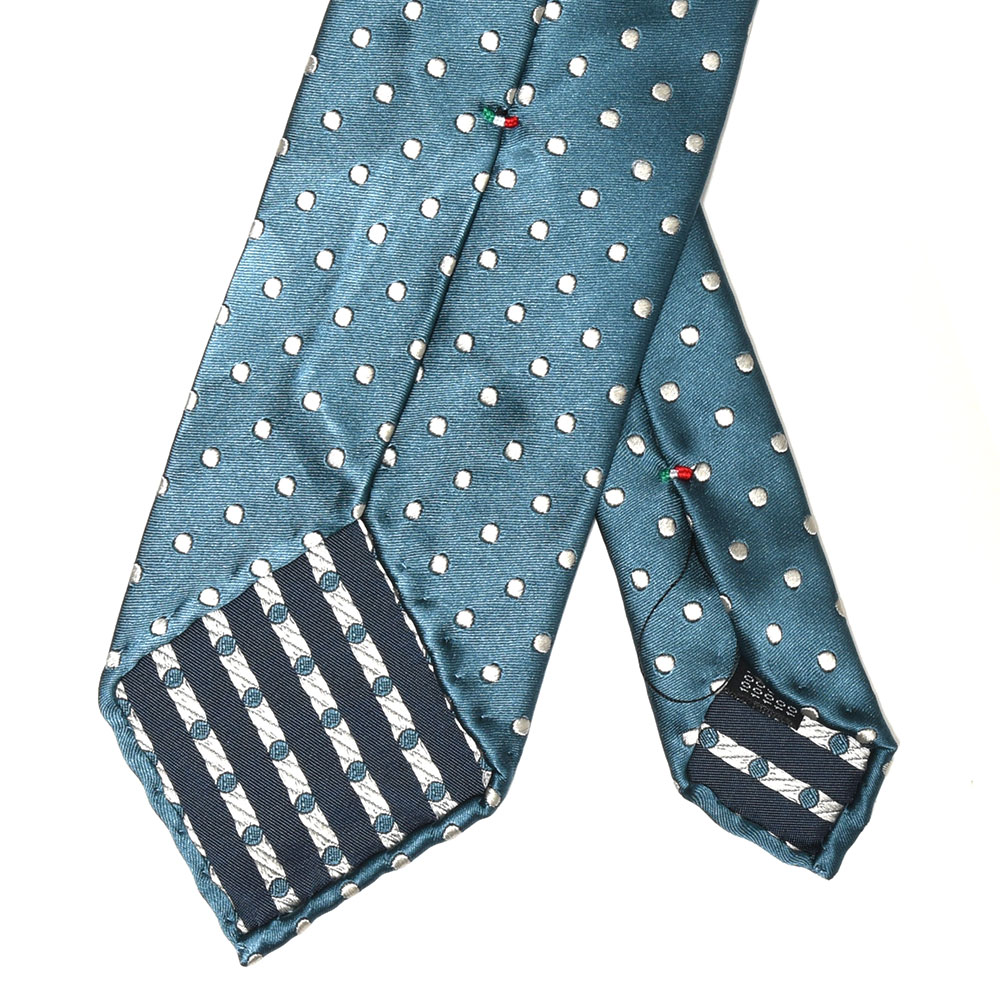 Stefano Cau(ステファノ カウ)らしいニュアンスを伴ったグラウンドカラーに織りで表現されたパターンが小気味よい、モダンなスタイルのドットタイです。