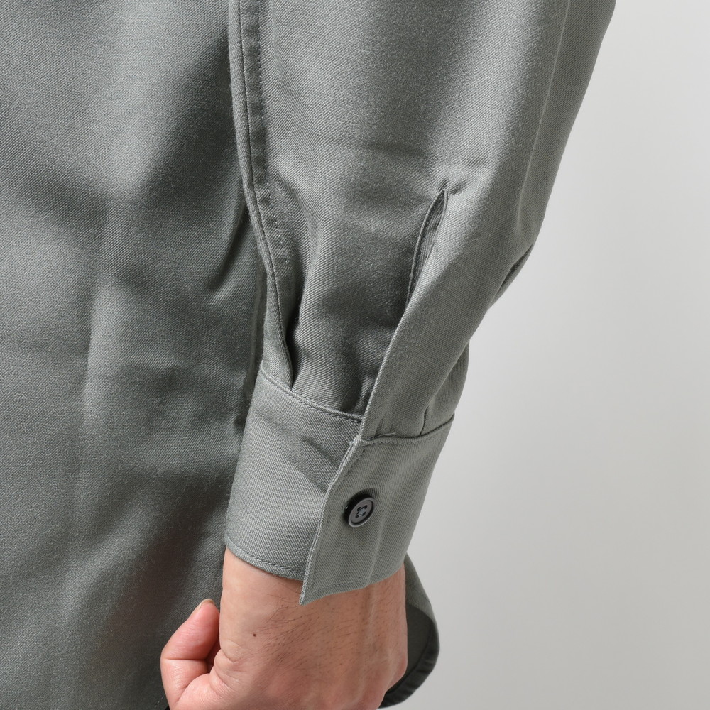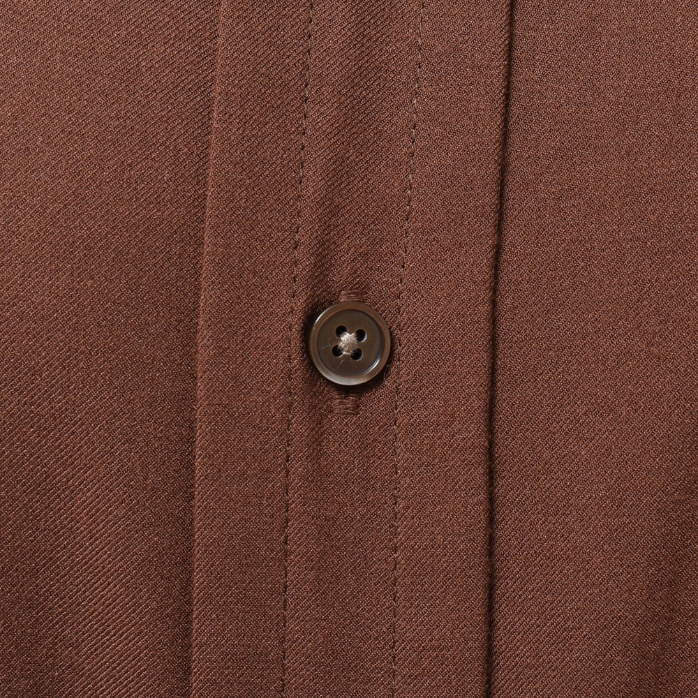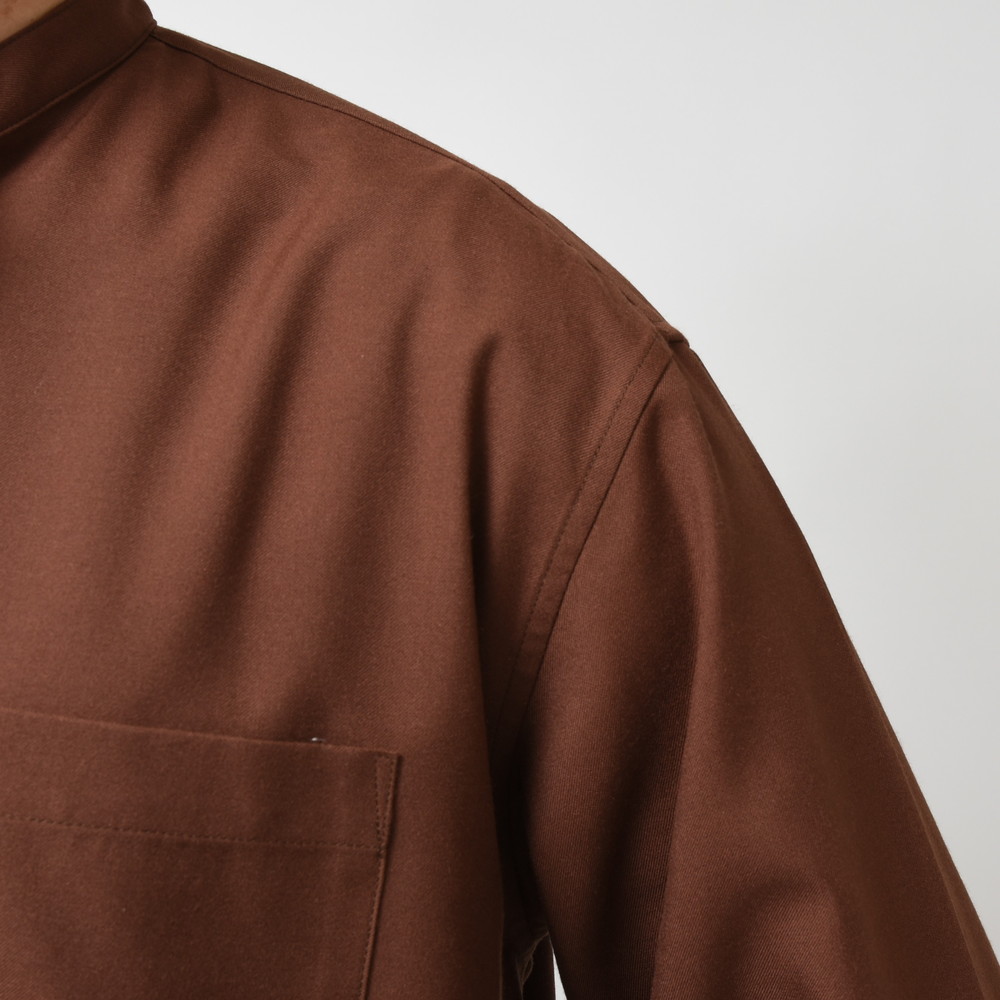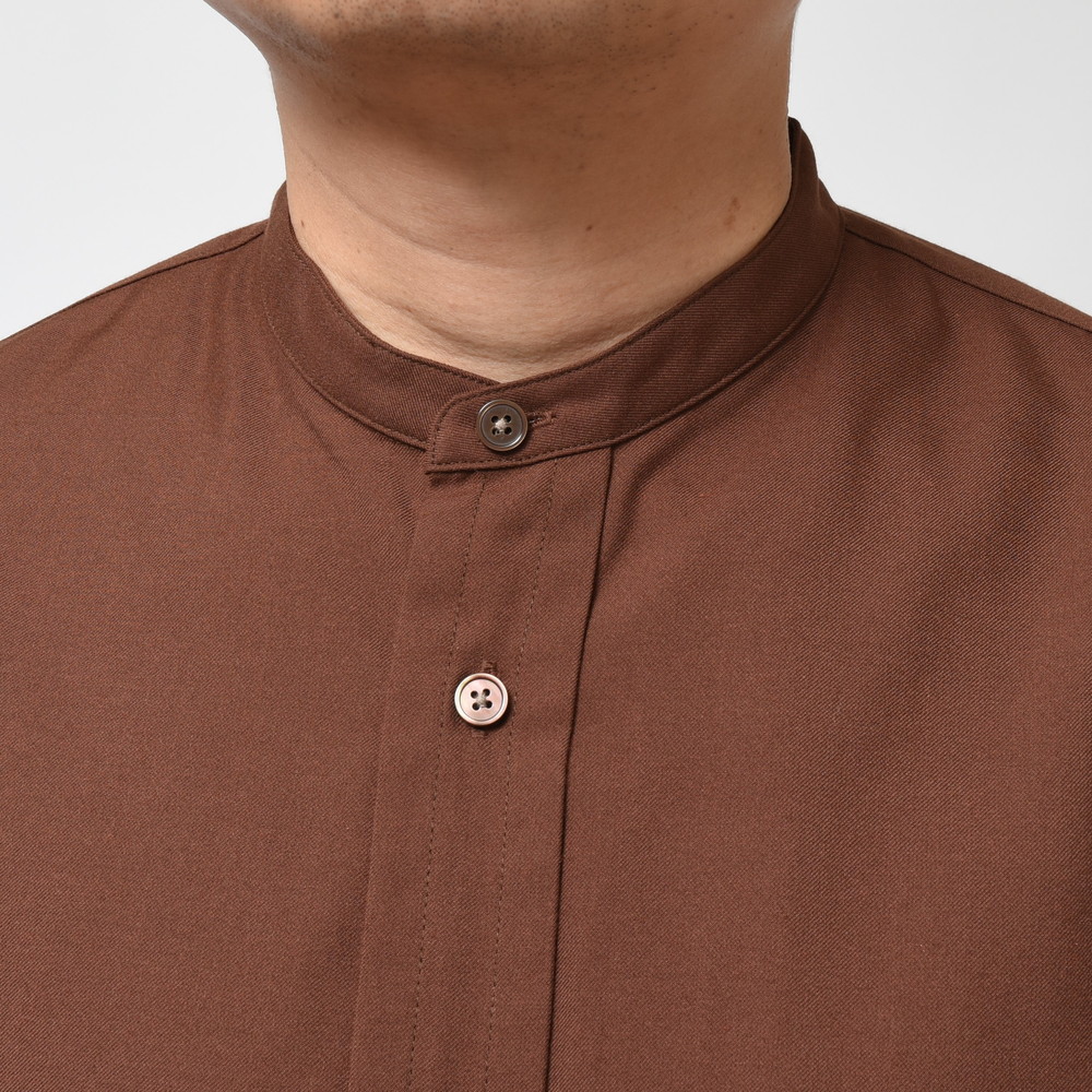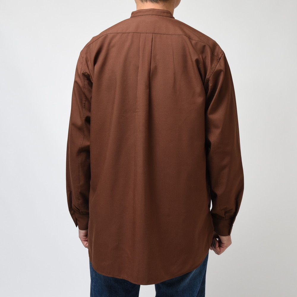 バンドカラー特有のフリーダムなムードがありつつも、コットンやリネンにはないキリっとした生地のムード、品格とまでは言いませんが、スタイルに一定の品の良さをもたらしてくれるのは間違いないかと。