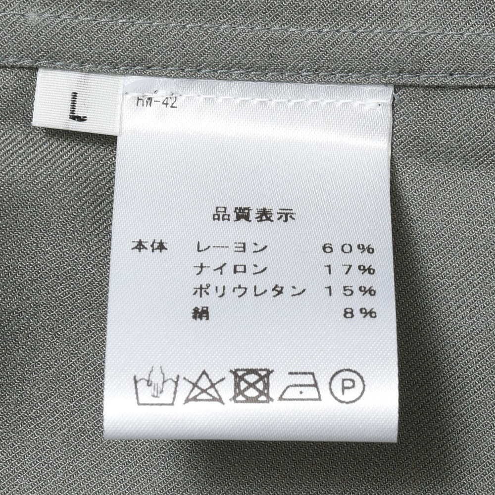 レーヨン、ナイロン、ポリウレタン、シルクの四者混。そもそも見かけない特殊な素材使いで、発色もなおのこと特別。