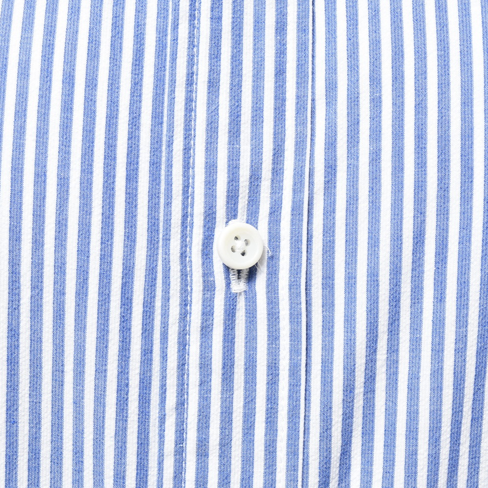 前立てありのボタンダウンでロンドンストライプ、気持ちサッカー調の立体感のある生地のタッチはアメリカンでありイタリアンでもある、何とも言えないムードがあって素敵です。