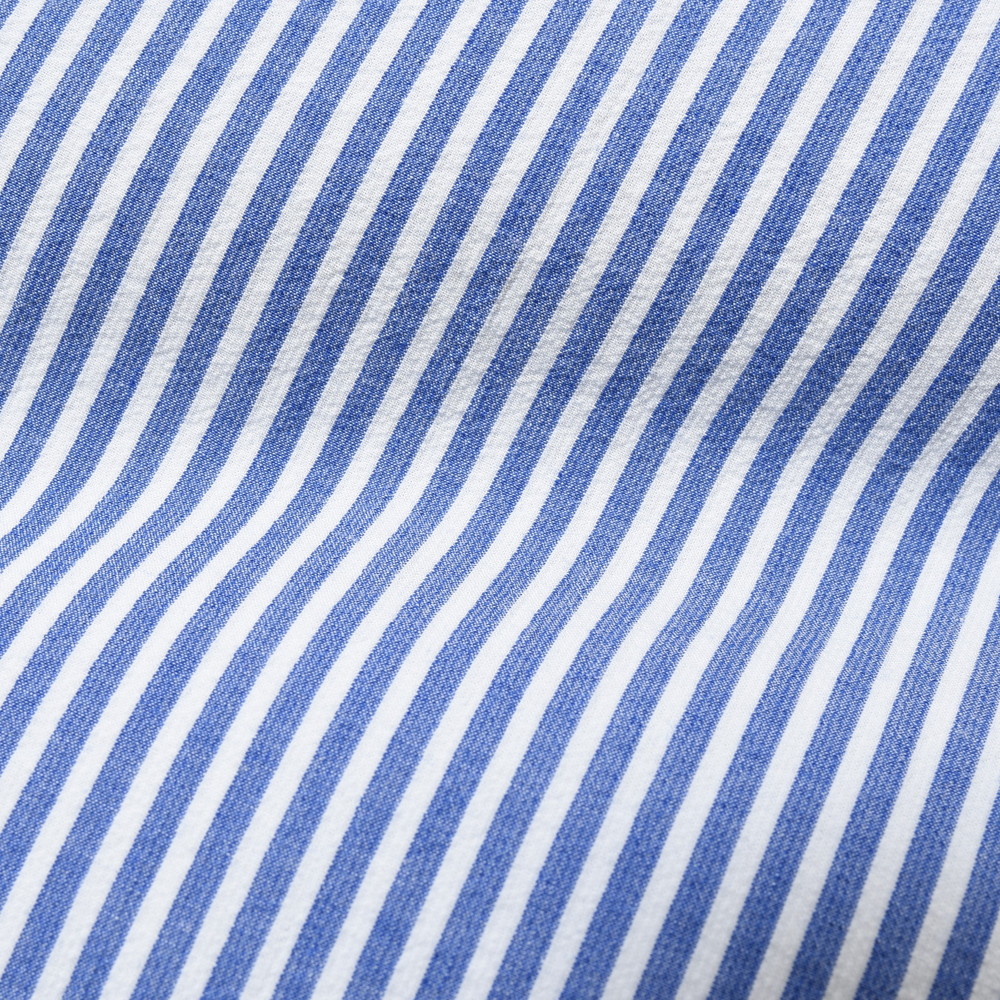 モダン且つクリーンなムード漂うrdv o globe(ランデヴー オー グローブ)のストライプシャツ、ベーシックなボタンダウンシャツですが生地にドライタッチが魅力のスモールウェーブを採用、これは生地に細かな凹凸を作り肌への接触面積を少なくすることにより、快適性をキープするように出来ているんです。