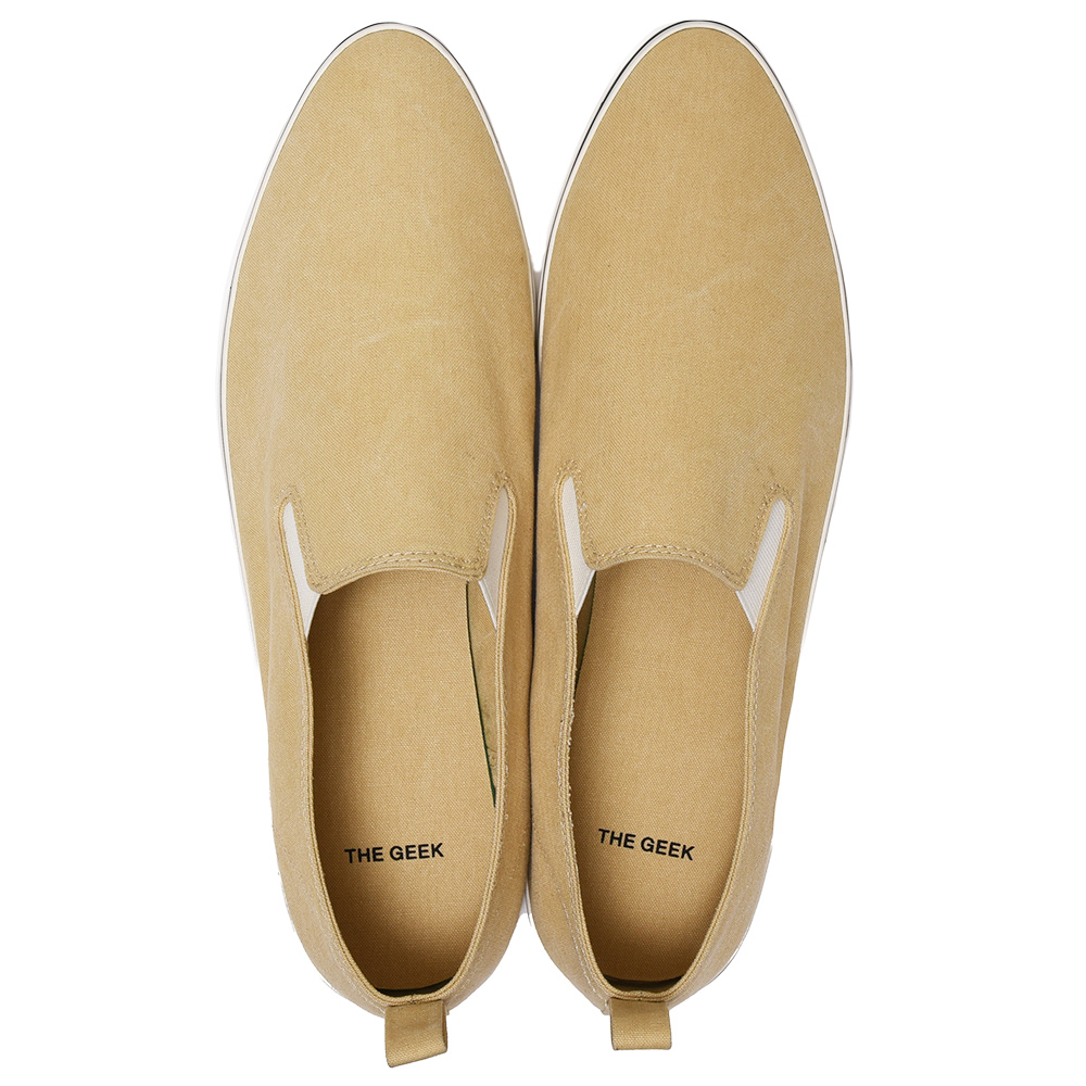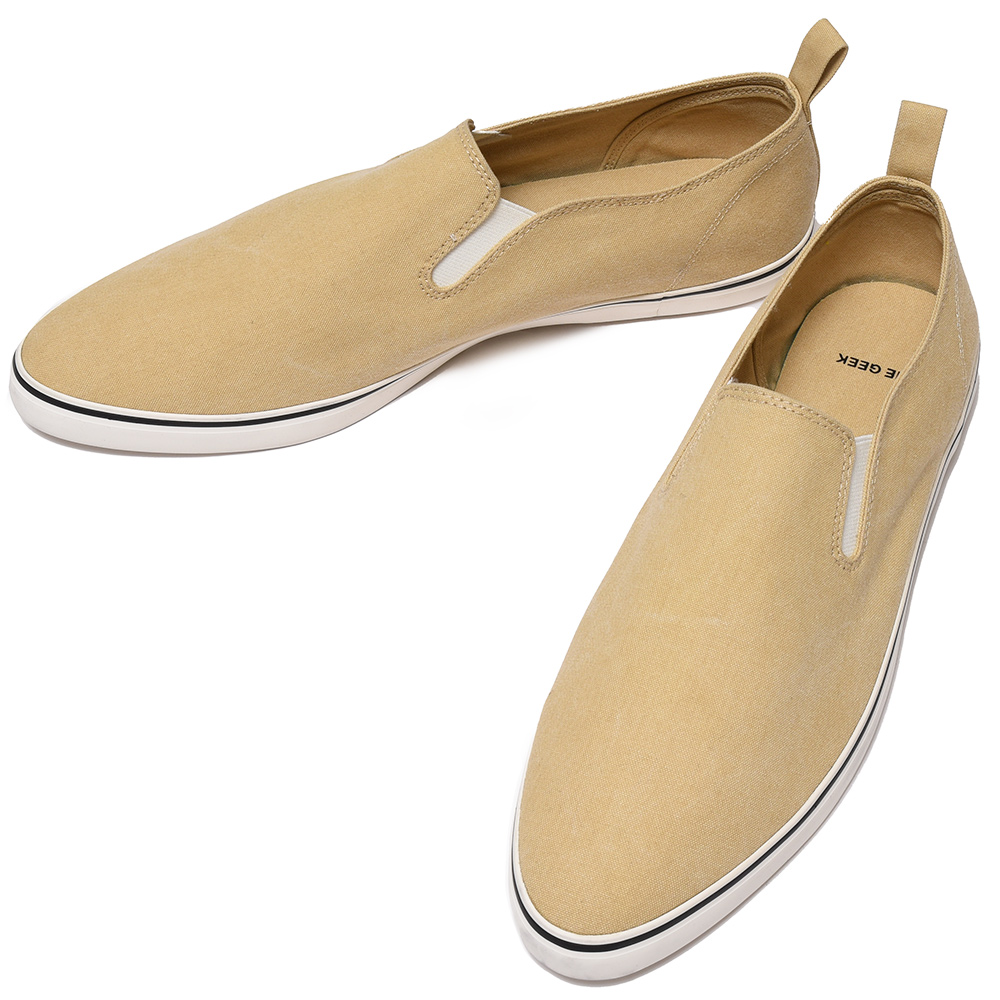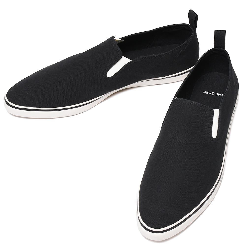 THE GEEK(ザ ギーク)のキャンバススリッポン、昔ながらのズック靴・・・的な一足ですが、そのスタイルは確実にアップデートされ、モダンなムードを漂わせます。