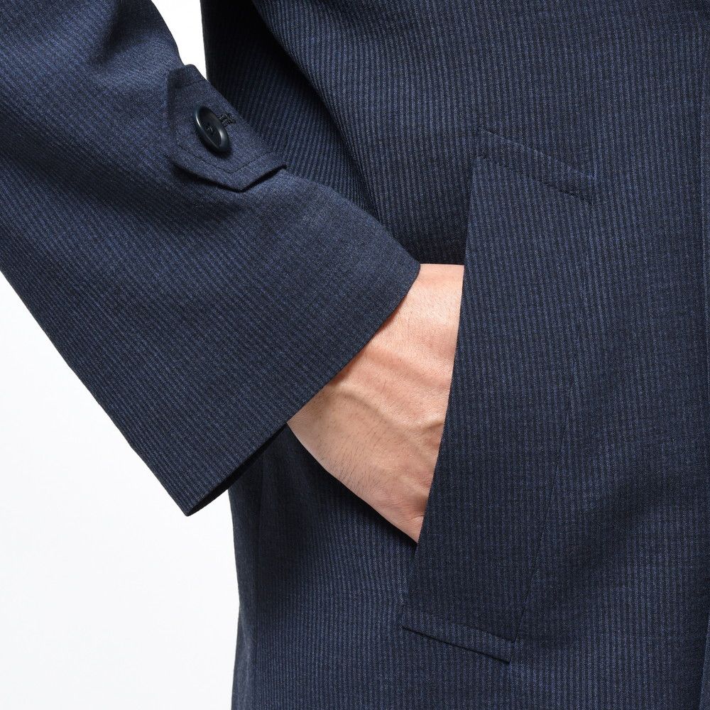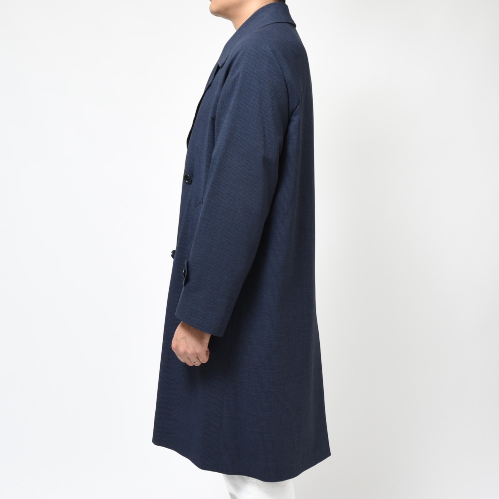 落ち着いたトーンのネイビーコート、ドライタッチな生地ですが、シワが出にくく軽やか。ペトリロらしい独特の雰囲気を持ったコートですね。