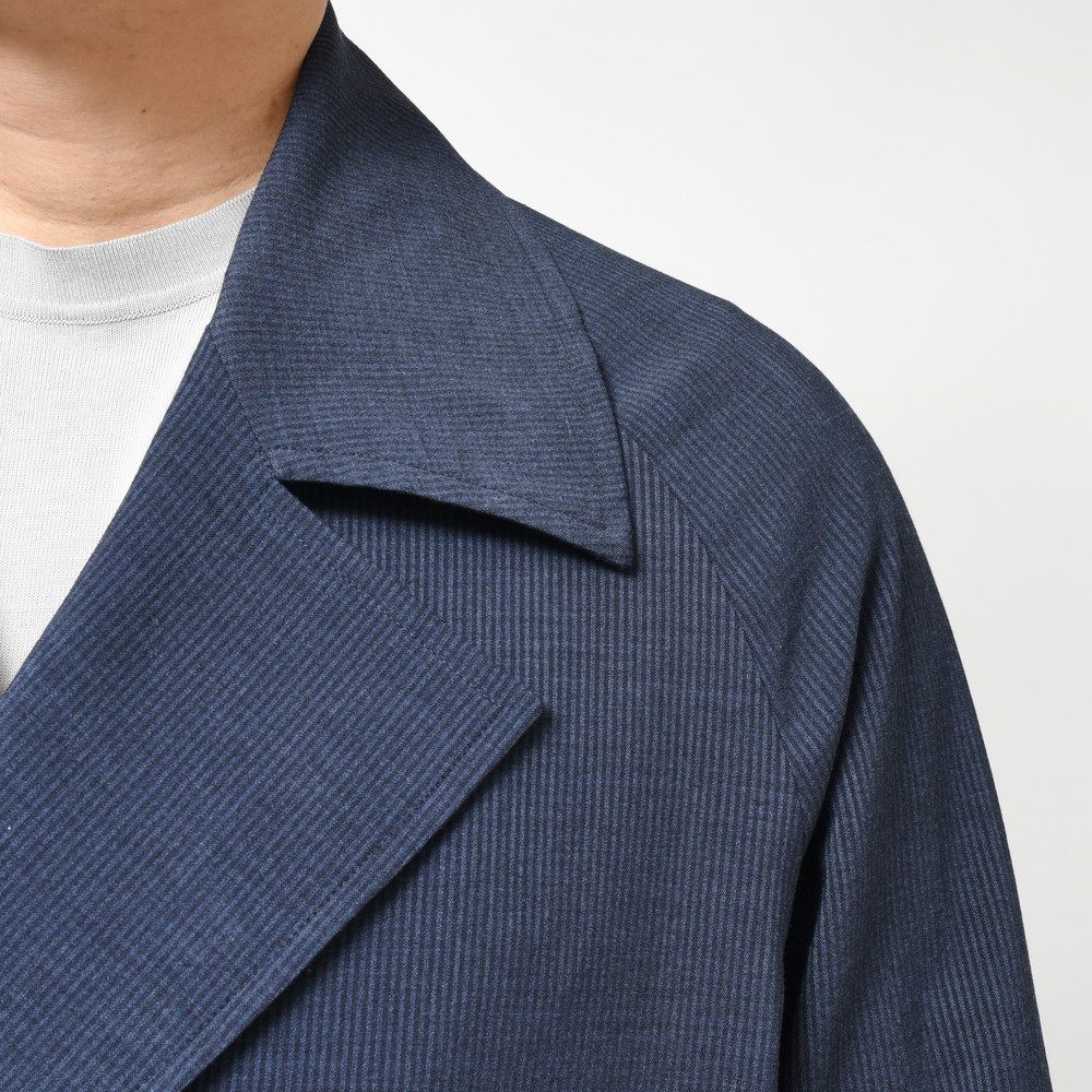 春らしいウール×ポリのストレッチ生地を用い、大人のモダンなスプリングコートとして完成されたエレガンスを漂わせる仕上がりになっていると思います。