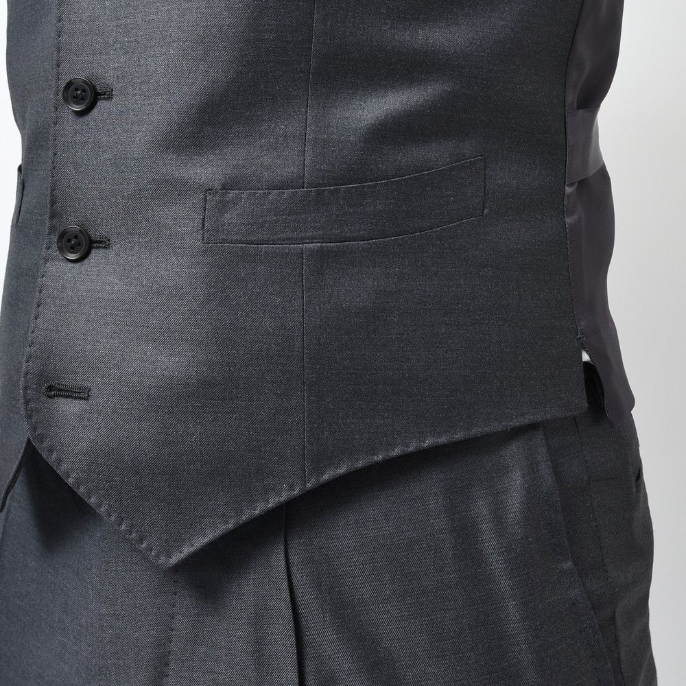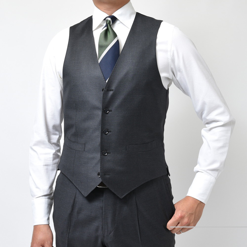 いわゆる「ねずみ色」とは一線を画す艶感があり、上品でエレガント。ジレがあるとさらに品格が高まりますので、使用頻度はそこまで高くないかもしれませんがスーツとセットで揃えて頂けるとセレモニーでも気品を漂わせることが可能かと。