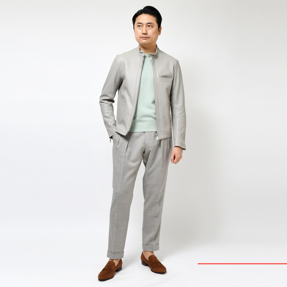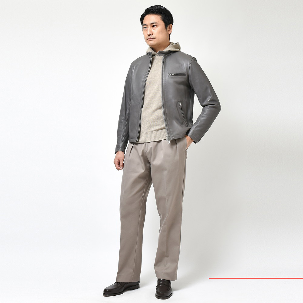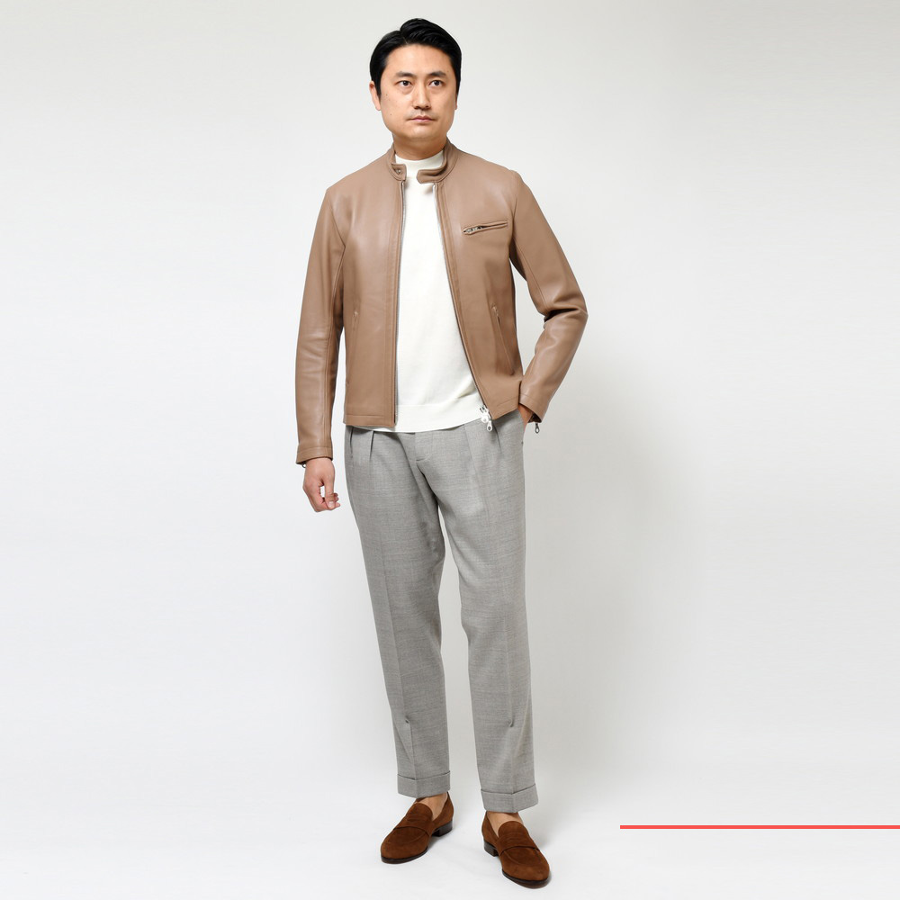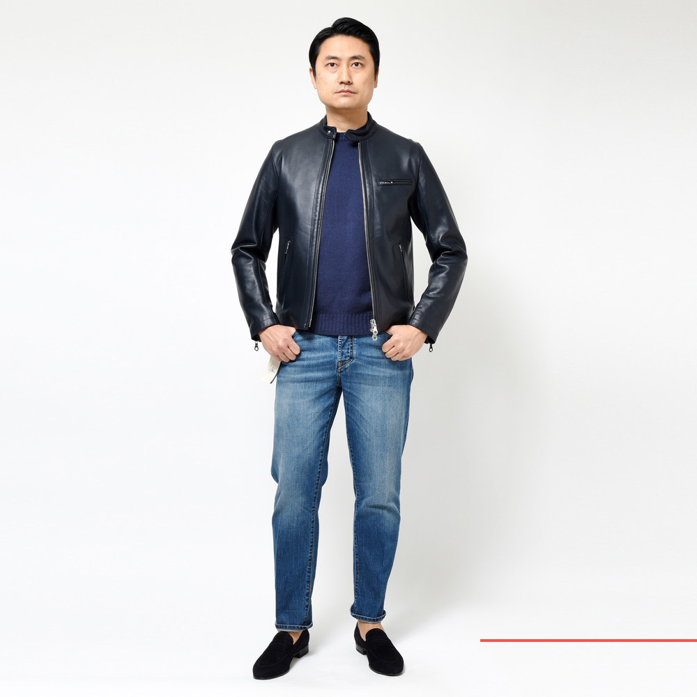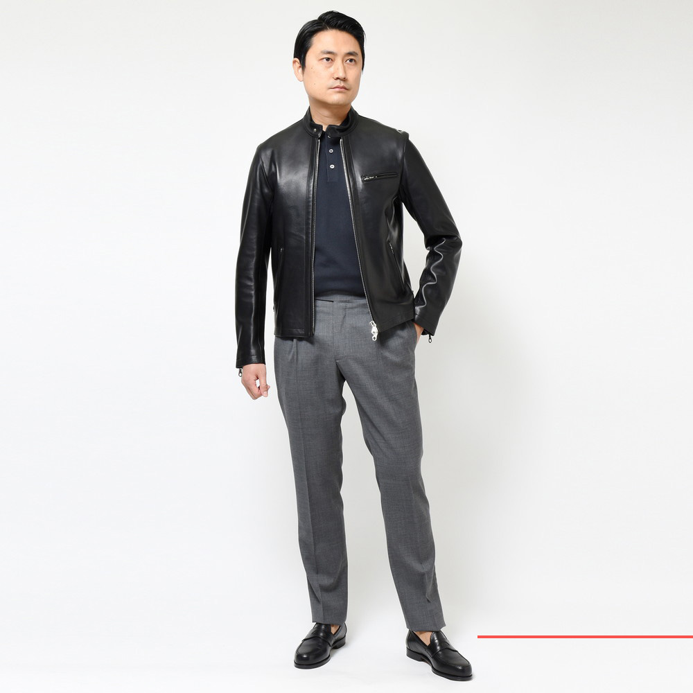 スマート且つスタンダードなライダースをお探しでしたら、まずこちらを選択肢に知れるのが良いかと思います。意外性はなくとも確実にスタイルの根幹になるであろうアイテムだと思います。