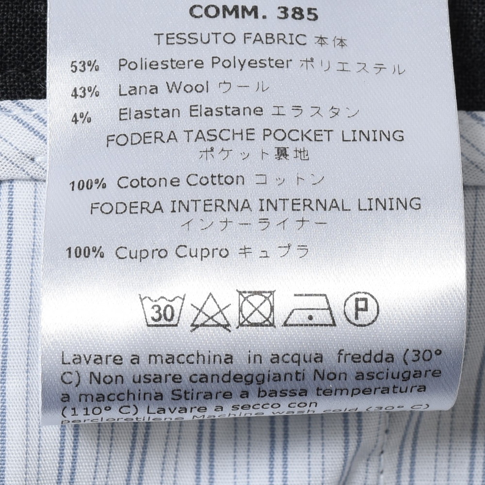 生地はコンフォート性のあるポリエステル、ウール、ポリウレタンの3者混になっていまして、見た目のシルエットでは中々想像できない快適性を秘めています。