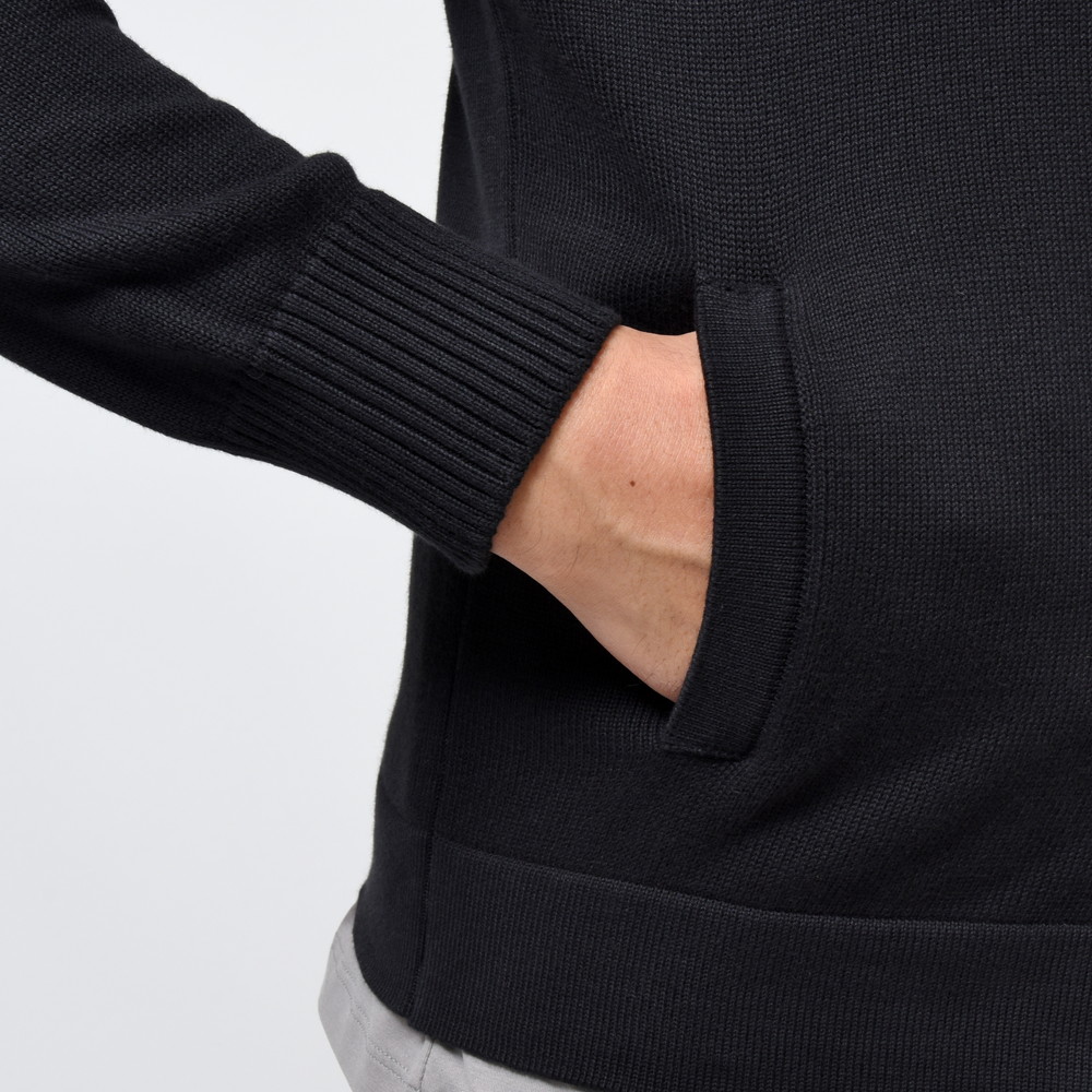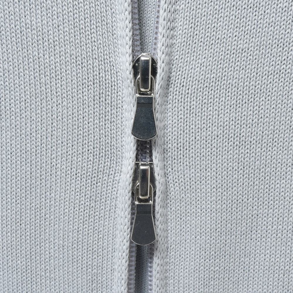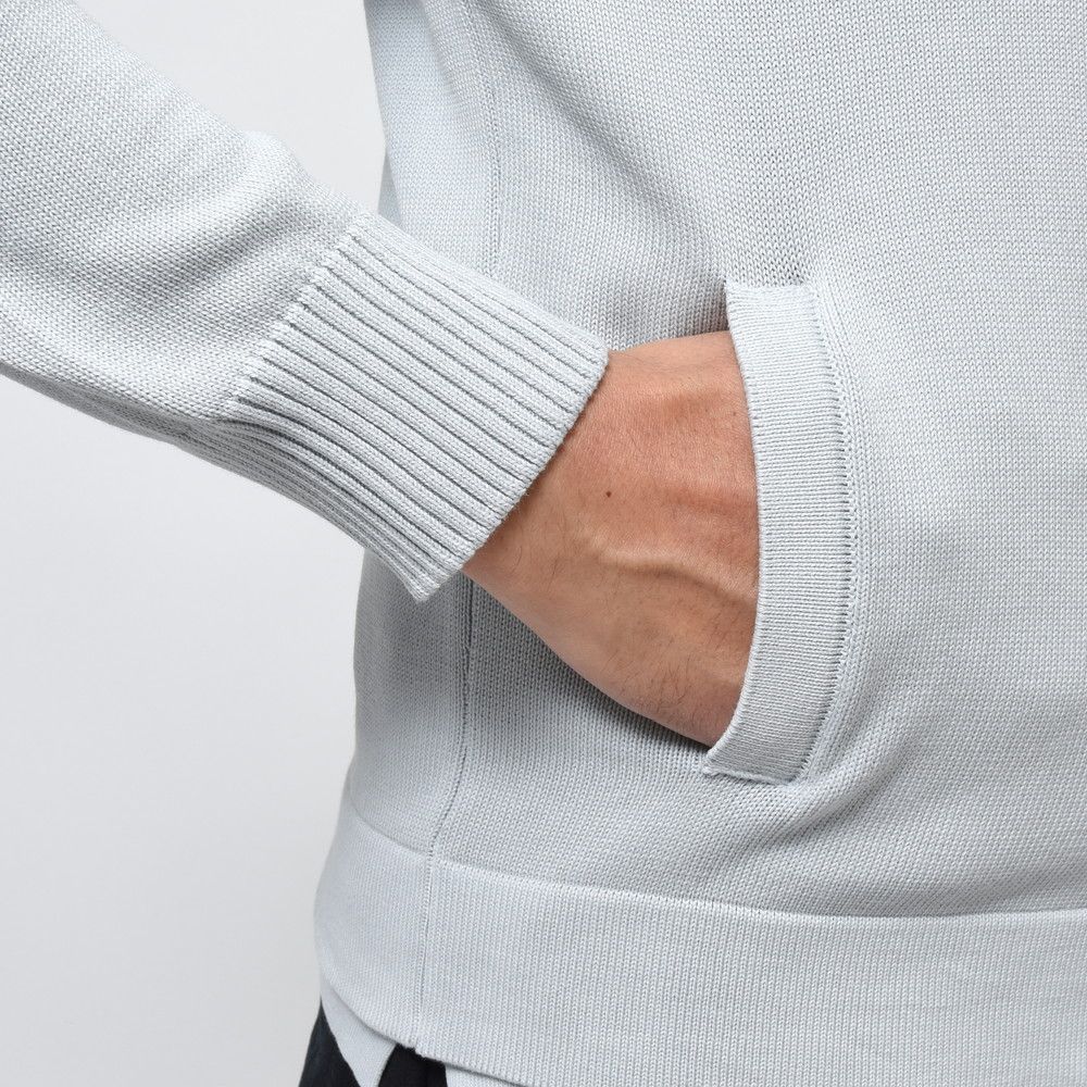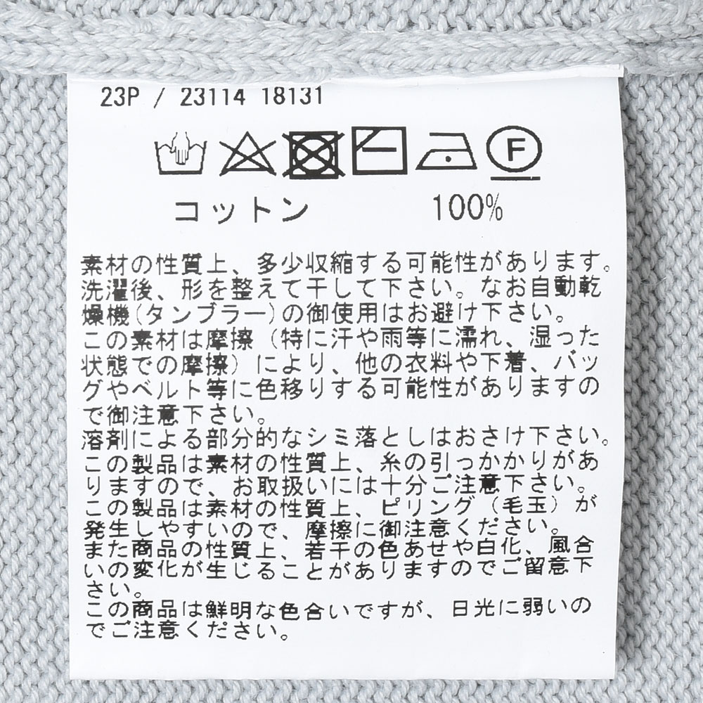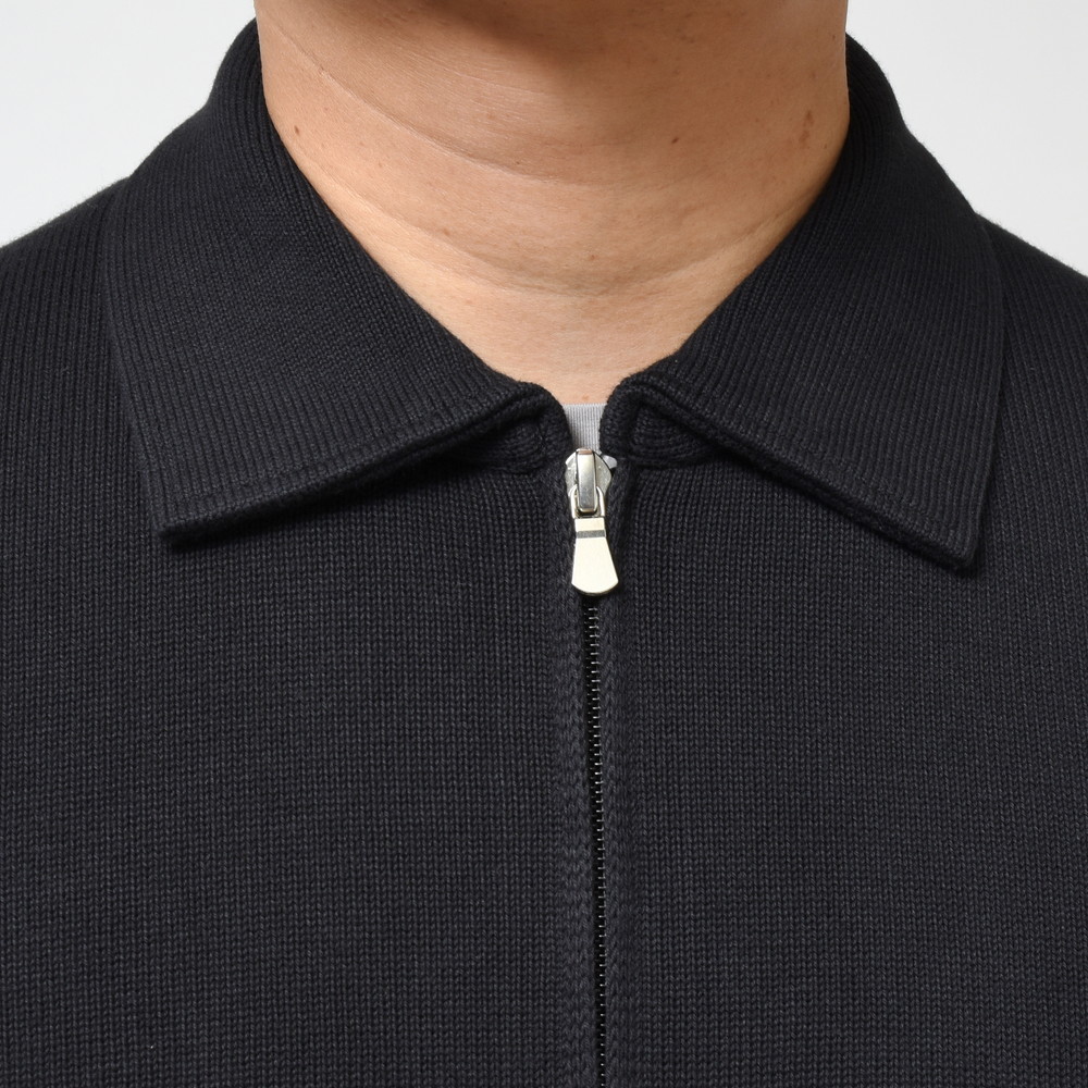 ニットTなどでは定番素材であるソフトコットンを用い、5ゲージで編み立てたミドルゲージタイプ。ブルゾンデザインでありながらカーディガンの様に着られるところがポイントで、カットソーやシャツを合わせるも良し、アンサンブル的にニットを合わせるも良し。
