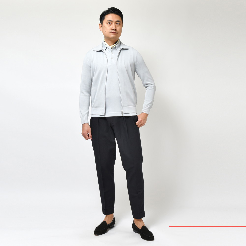 サッと羽織ることができるライトアウターという側面と、上品さを担保するカーディガンの側面、そしてイタリアらしいスマートさと色気を漂わせるGRAN SASSOの特性が相まって、非常に素晴らしい出来になっていると思います。