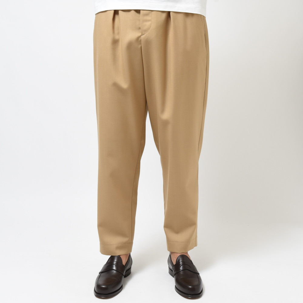 ブランドとして通年で提案しているウールトロピカル素材、流石に真冬は厳しい所がありますが春、夏、秋とほぼほぼのシーズンで活躍してくれる生地感になっているんですね。歩いた時の生地の揺れ方も非常に綺麗、カジュアルなアイテムでありながらもここまで品の良いタイプは中々お目にかかれないかと。