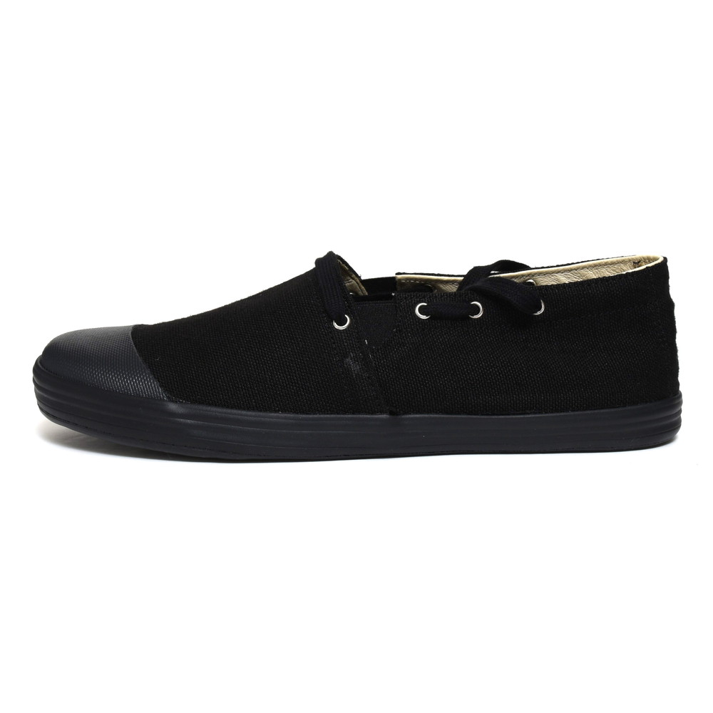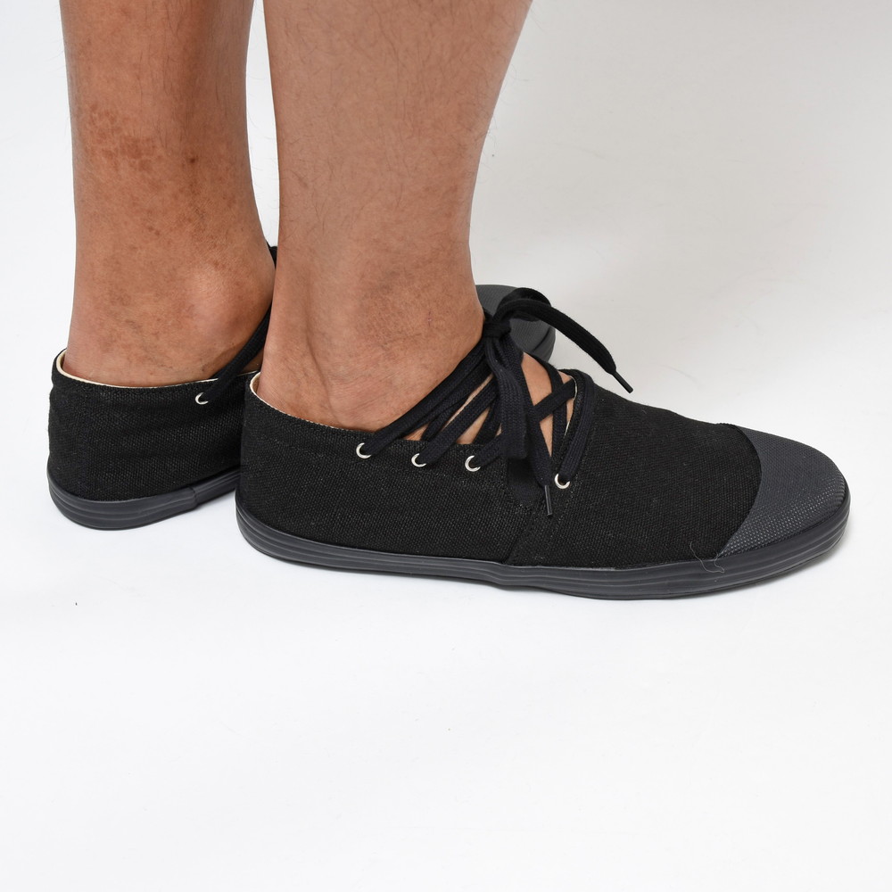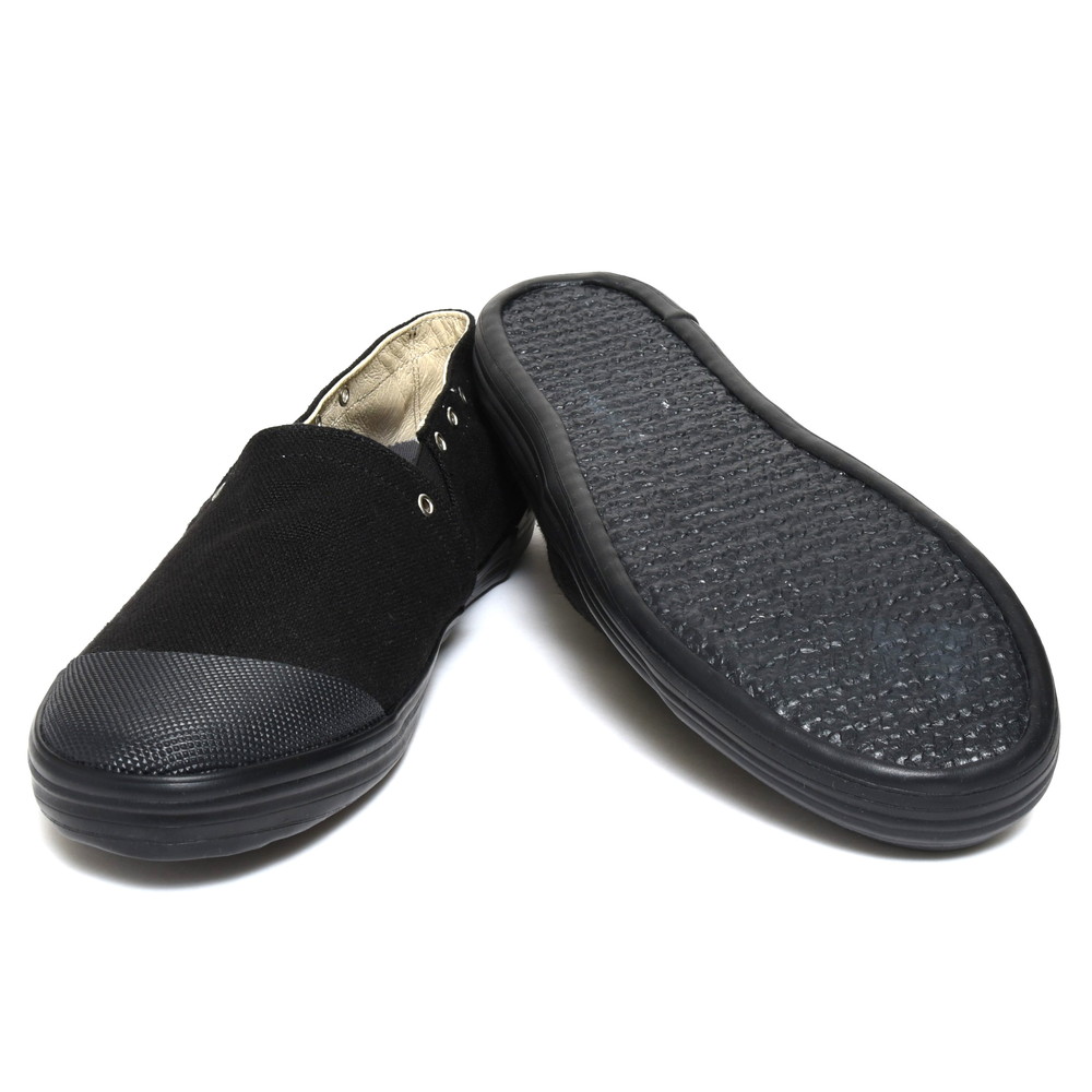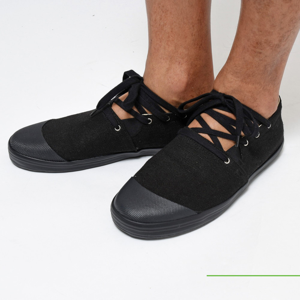 シューズの両サイドにエラスティックを仕込むことでホールド感と着脱が用意に出来るようになっている為、シンプルなスリッポンとしても活用可能、またシューレースも付属しますのでエスパドリーユとしても使用可能な2WAY仕様。メンズでは珍しいアイテムかもしれませんが、リネンの清涼感とエスパドリーユ独特の抜け感がミックスされることで生まれる余裕は大人のオフスタイルに持ってこいだと思います。