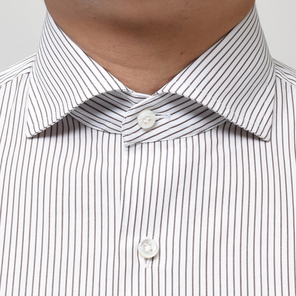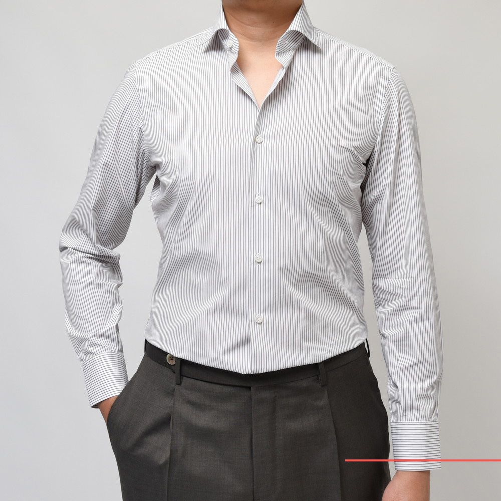 第一ボタンだけ外すのはちょっとお堅い、第二ボタンまで外すと胸がはだけすぎてちょっと今の気分ではない・・・、そんな悩みを解消するバランスで10年ほど前からずっとオーダーし続けているのがこのモデル“ENZOエンツォ”になります。