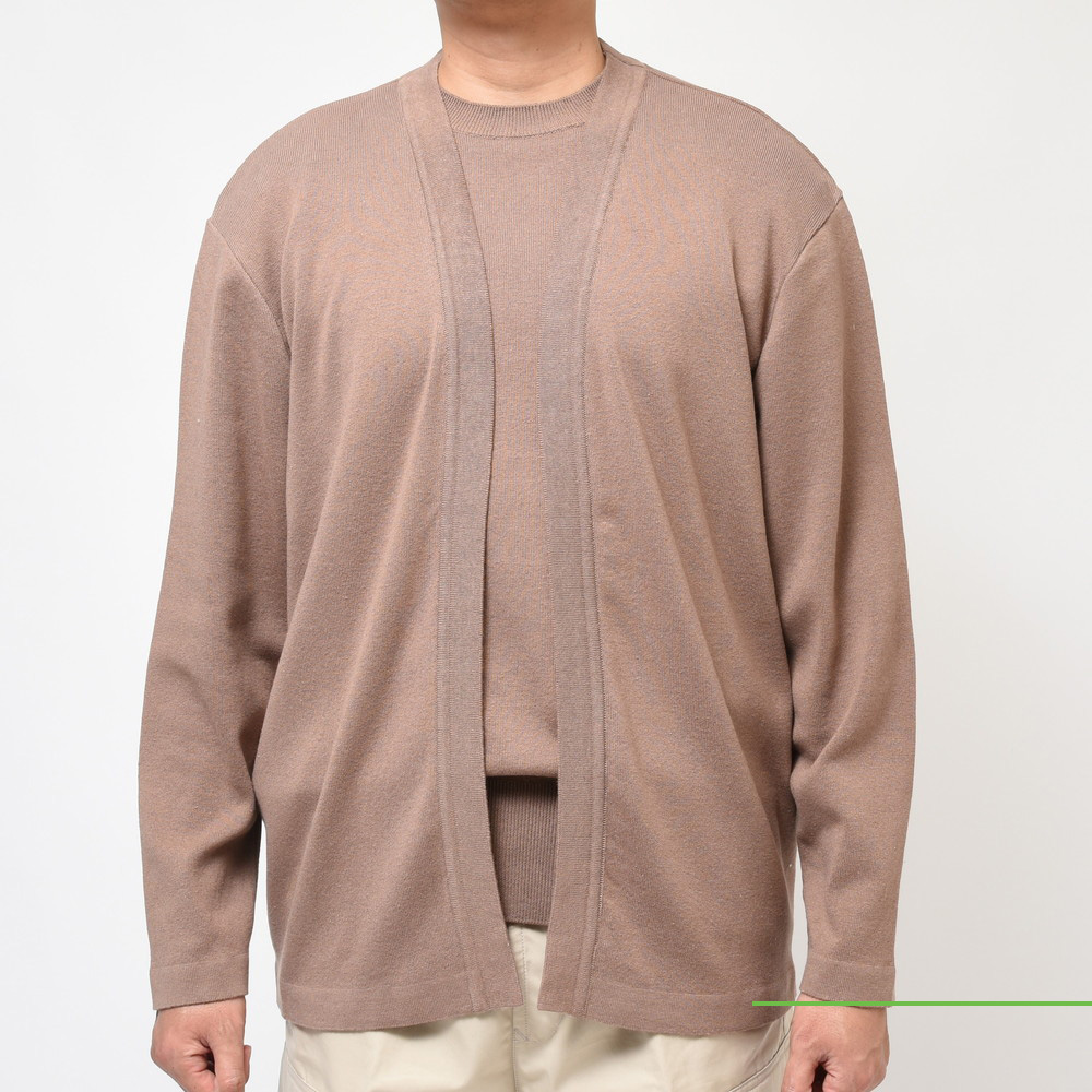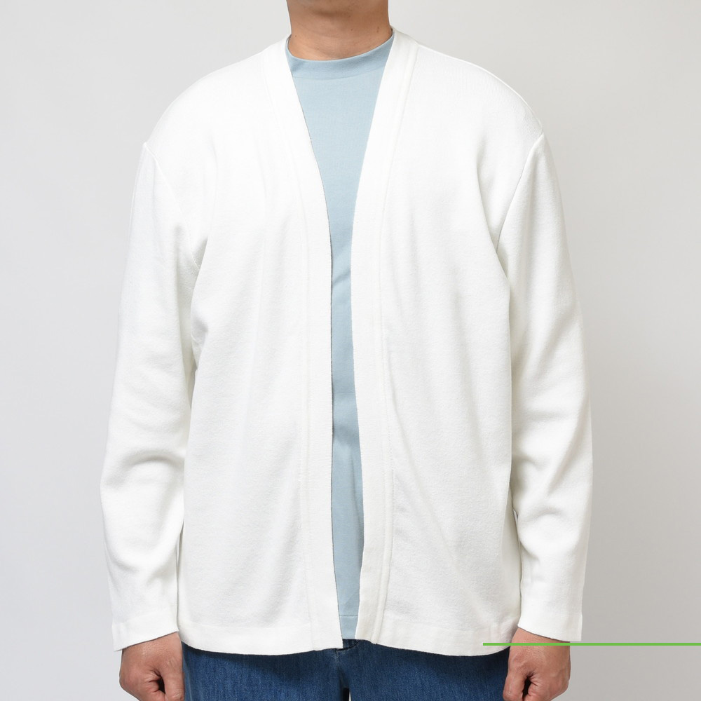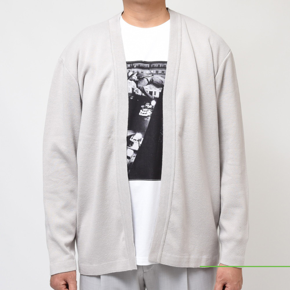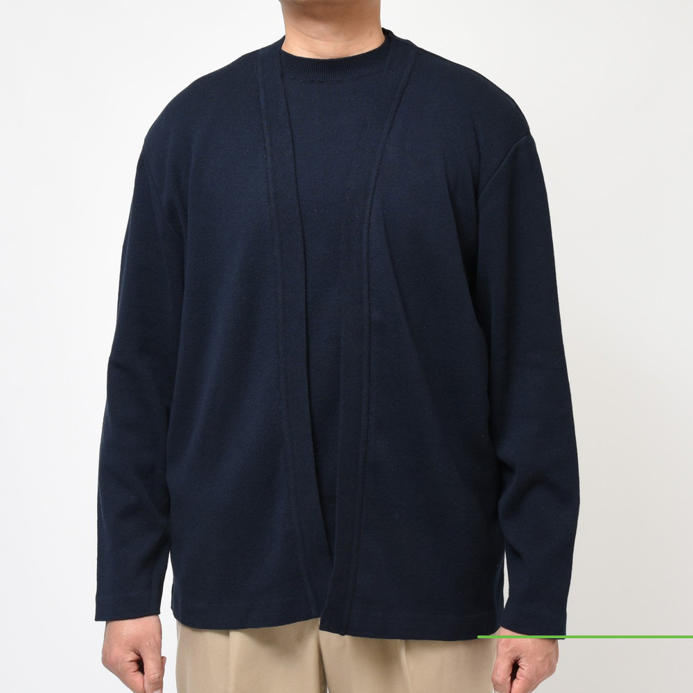 リラックス感のあるデザインですが、あえて落ち感の少ないニッティングにすることで羽織りとしての見え方を強めている印象で、この素材ならではといいますか、RENCONTRANTならではのデザインかと思います。