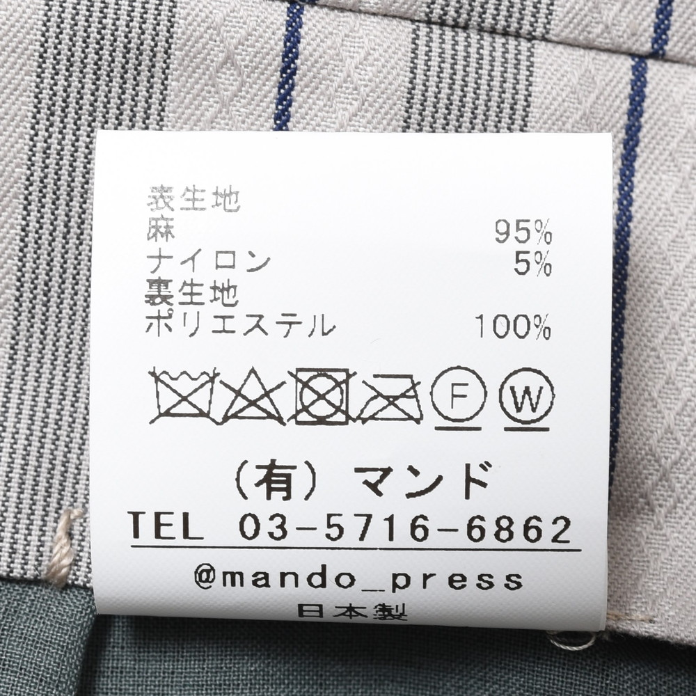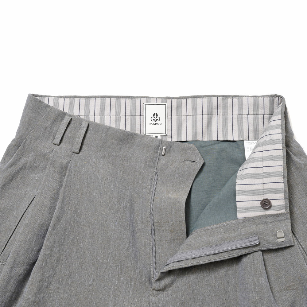 サイドシームレスにすることで3プリーツからサイドに流れるドレープ感も他にはない魅力の一つでして、丸みがありながらもダボッっとし過ぎないバランス感はmando(マンド)ならでは。