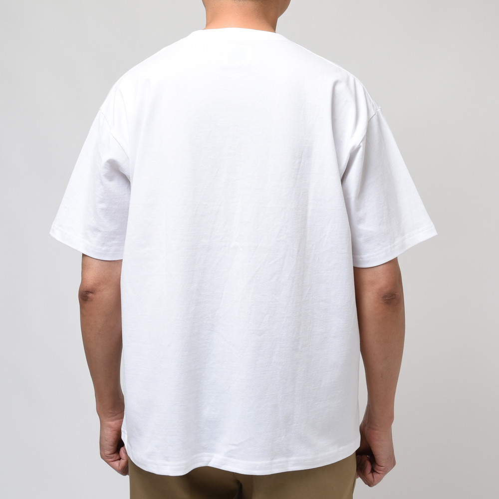 モデルの着用サイズはLになっていまして、よりオーバーサイズで着用したい方はXLをチョイスして頂いても良いかと思います。