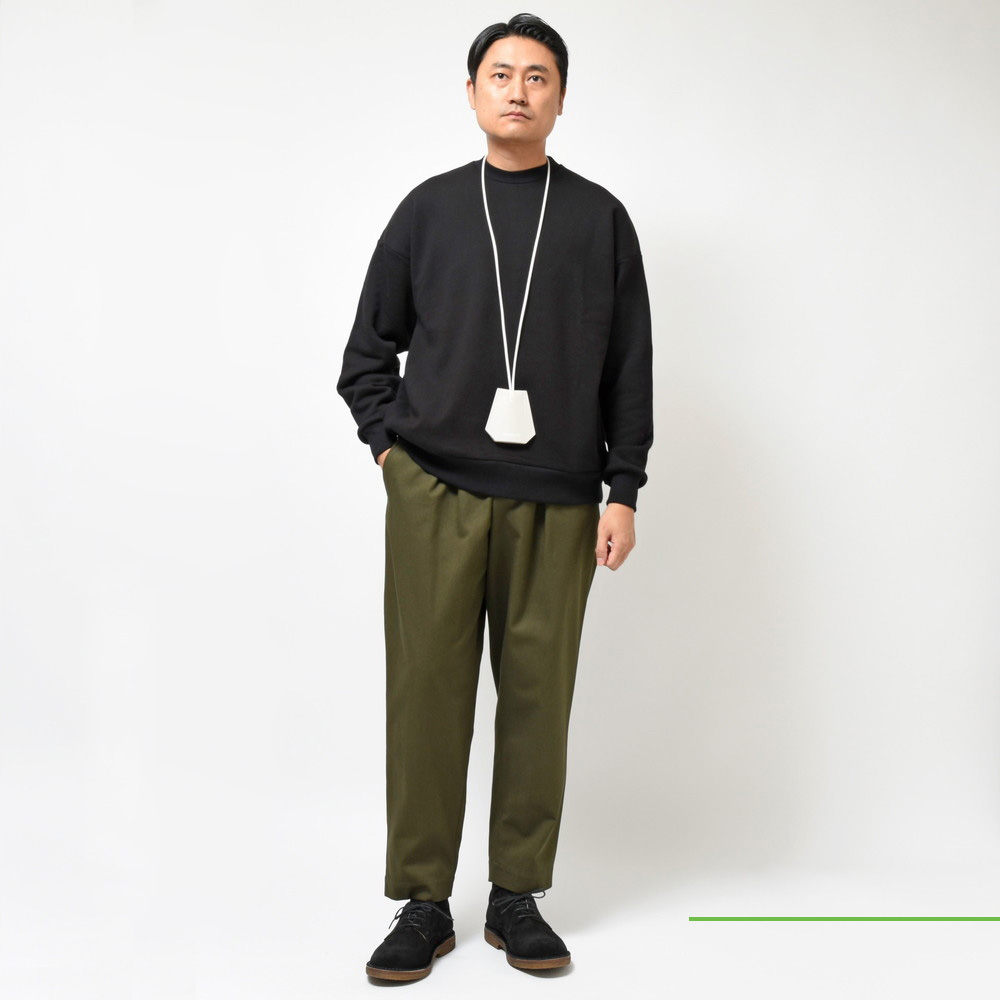 アイテムとしてはクルーネックのスウェットなのでアスレチックなデザインにはなりますが、シルエットが本当に絶妙で、ストリート感がありながらドレスに通じる上品さがあります。