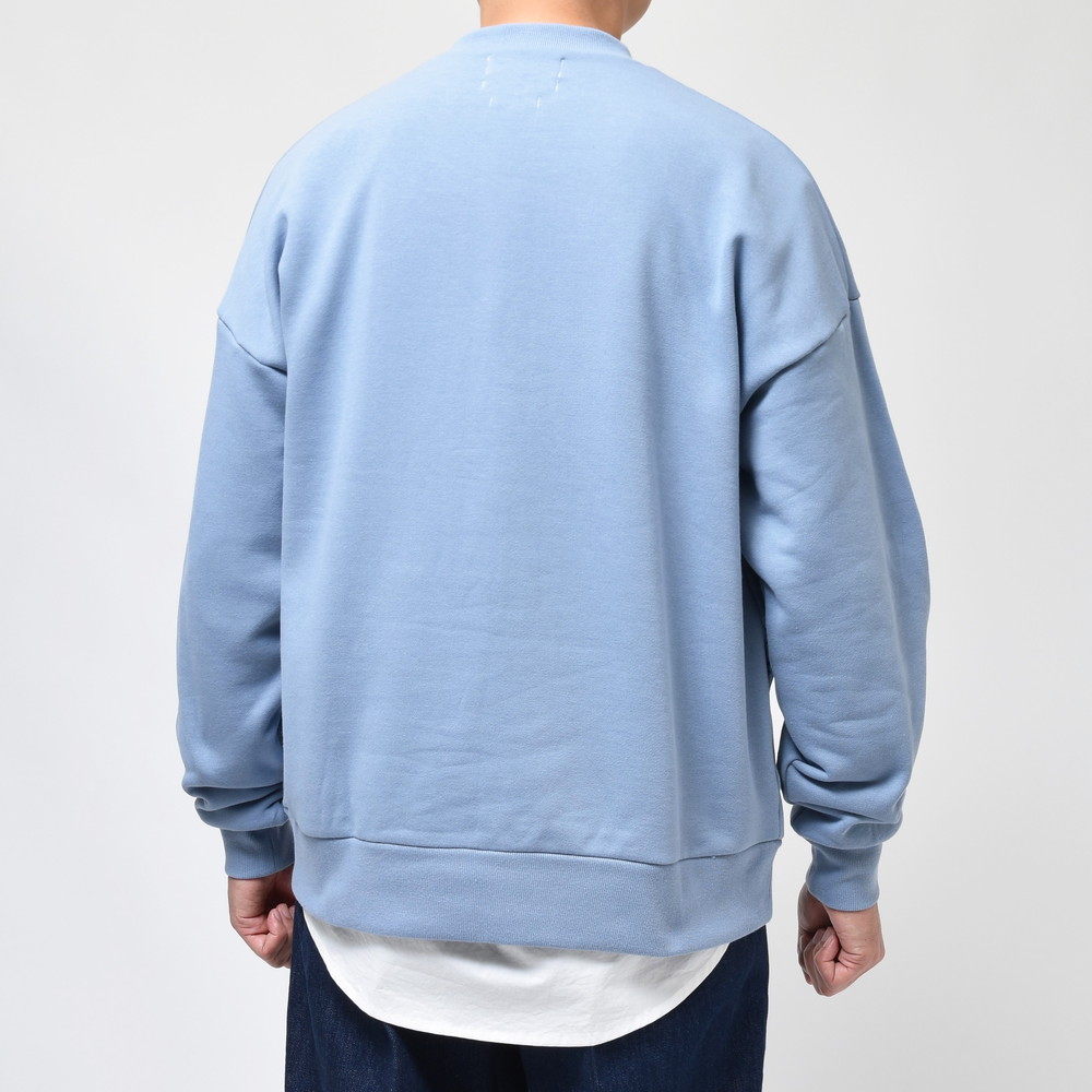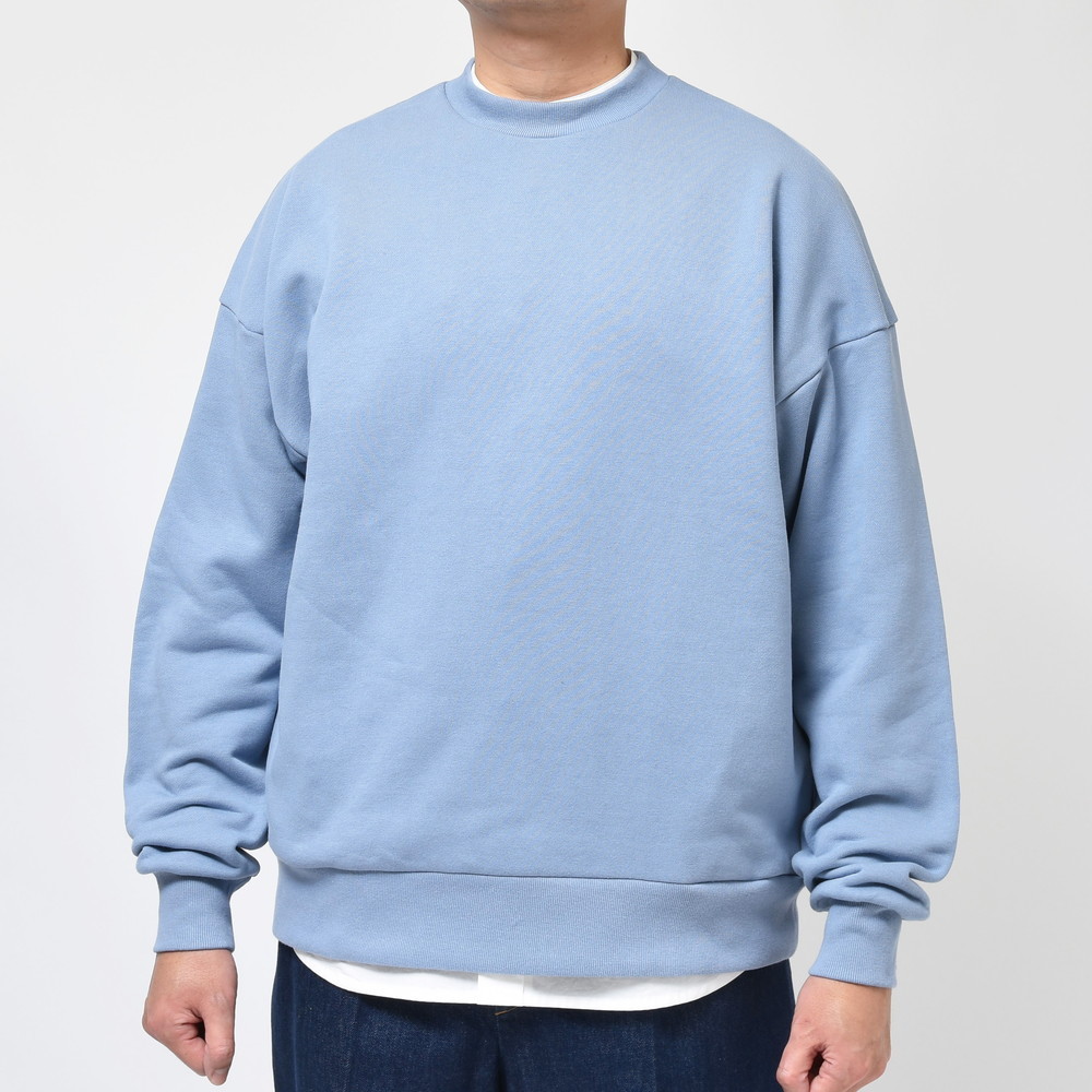 ロゴもなく極めてシンプルなクルーネックスウェット、大人が着るにはこのぐらいのバランスがベストかもしれません。色の出方が綺麗なのも魅力の一つ、意外と似寄りのものがない一着だと思います。