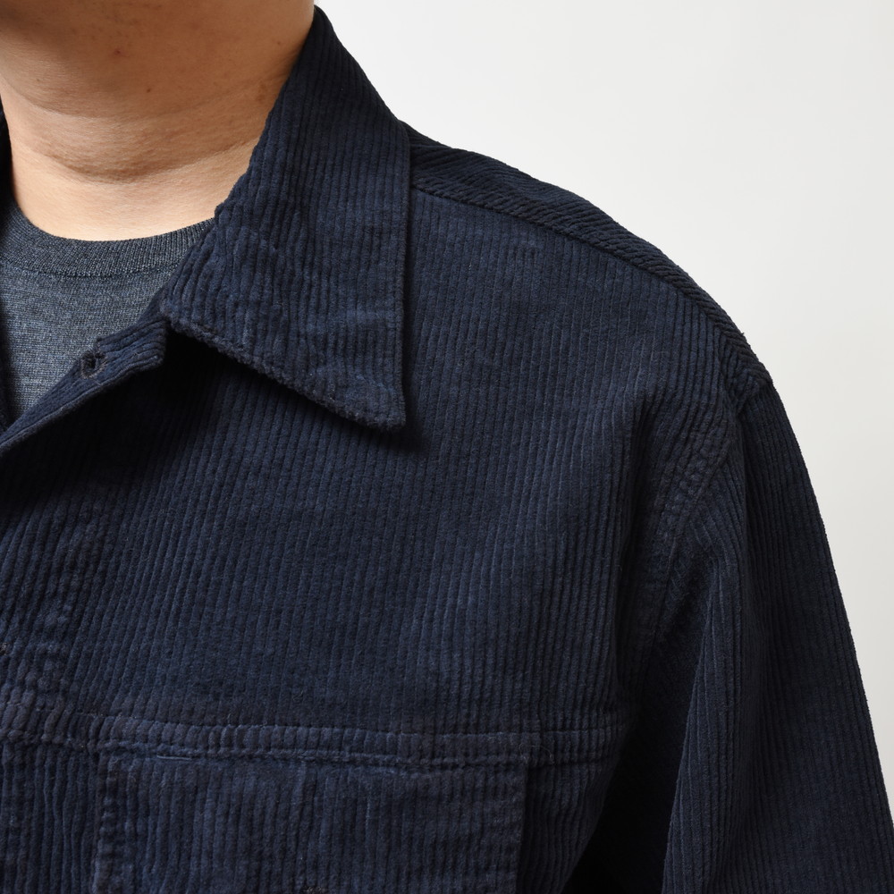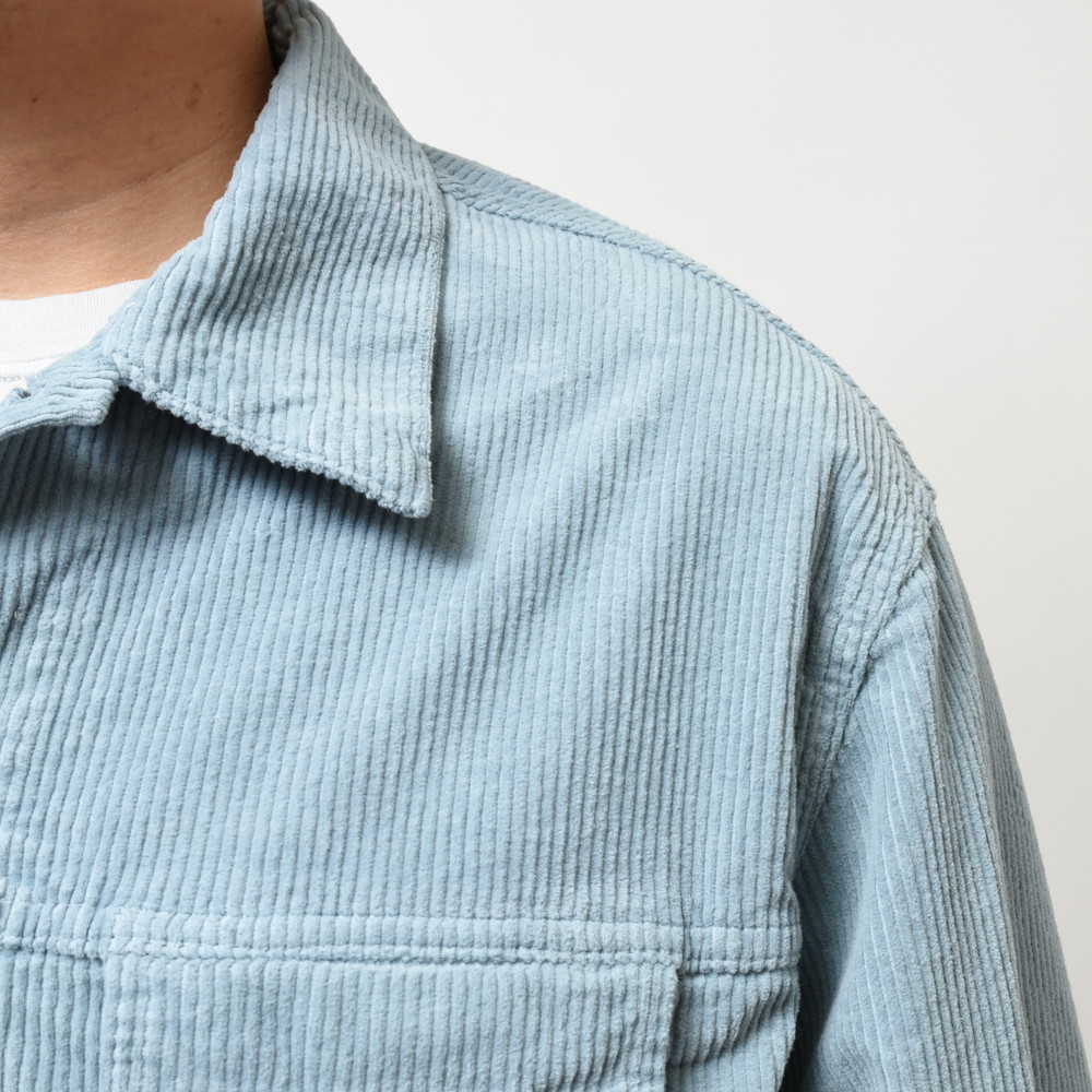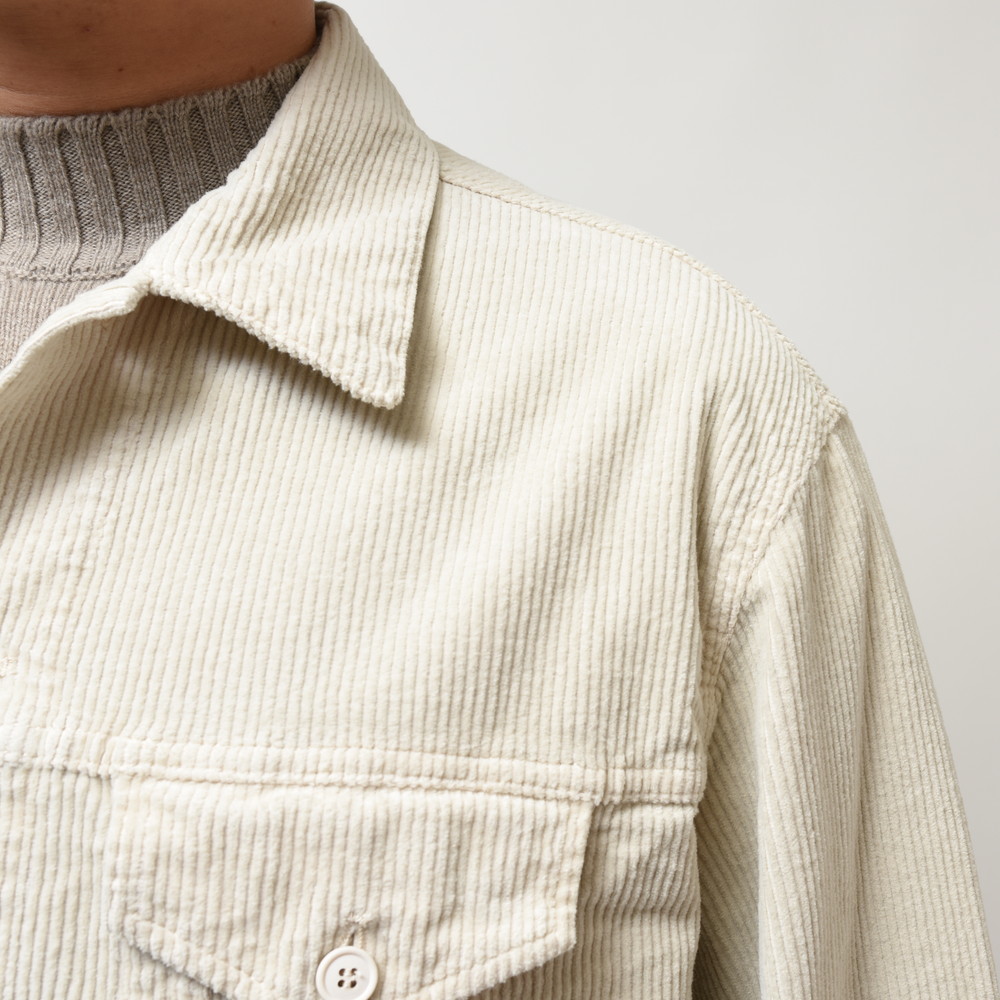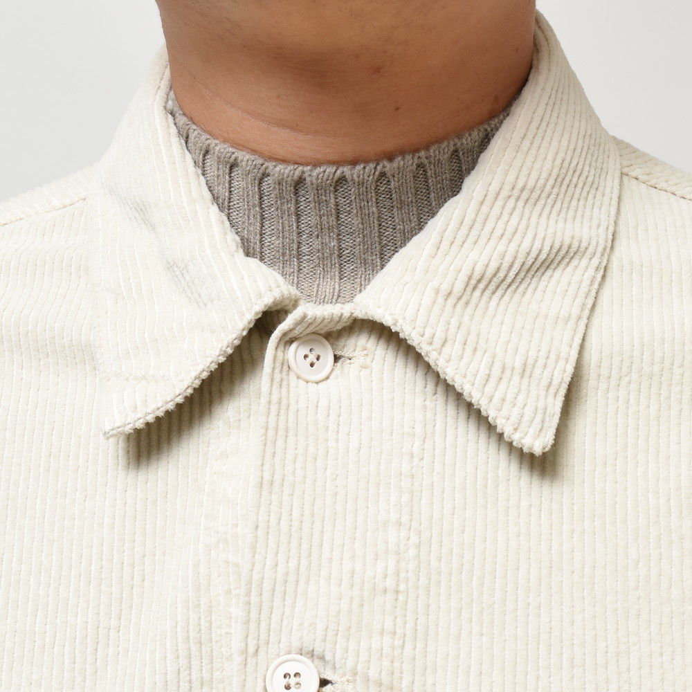畝のはっきりしたコーデュロイを採用することで季節感をしっかりと演出出来るのも大きなポイント。リラックス感があり羽織るだけでこなれた印象にしてくれる万能アイテムです。