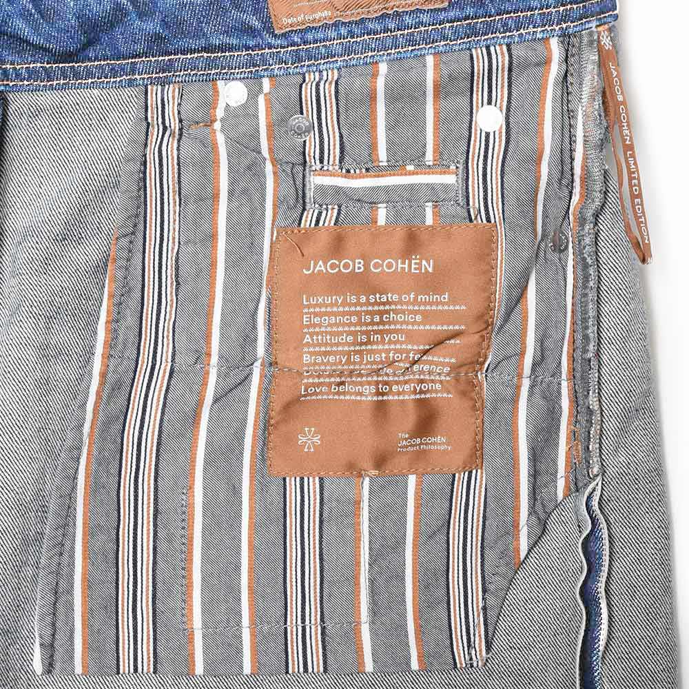 ◇リミテッドエディション セルビッジデニムを採用、メタルプレートにシリアルナンバーの刻印、ボタン リベットはステンレススティール製を採用する等、全てのディティールに拘った 同ブランドの最高品質モデル。付属としてJACOB COHENのシグネチャーフレグランスボトル5mlが付きます。