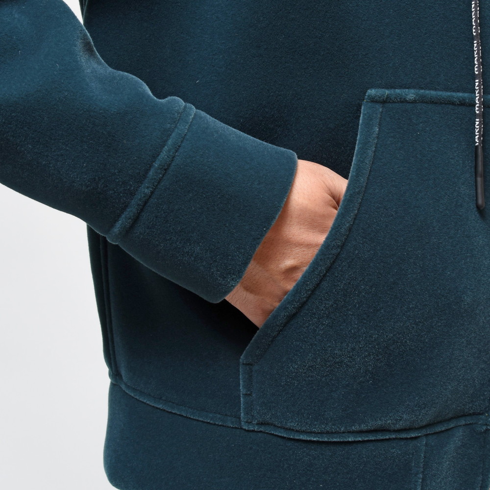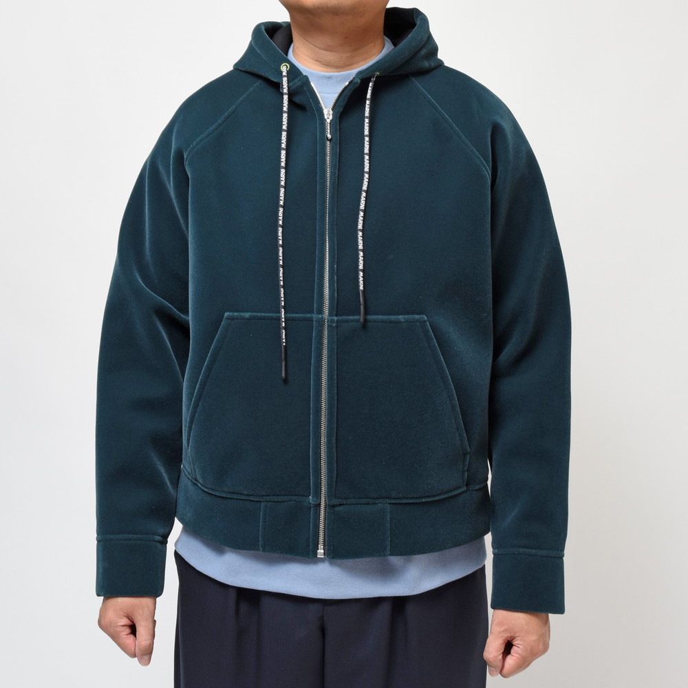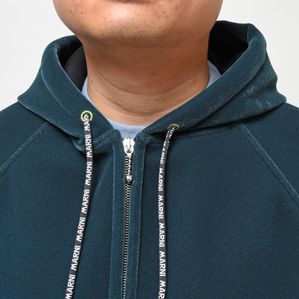 スポーティな中に上品さとキャッチ―な雰囲気を織り込んだ一着であるMARNI(マルニ)のフーディ。光沢のあるレーヨンスポンジジャージファブリックをボディに採用することで他にはないテイストのアイテムに昇華されています。