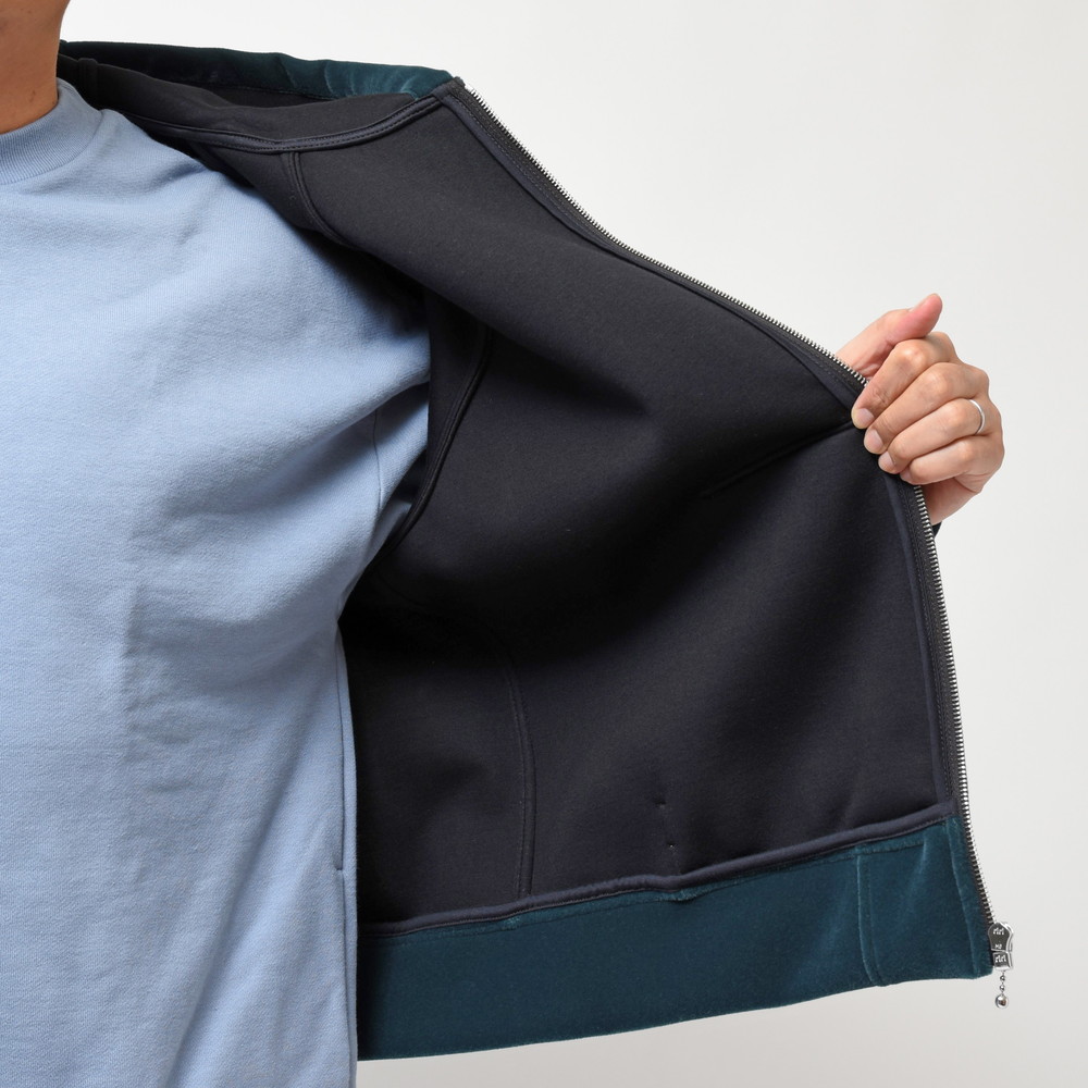 モノ自体はジップアップのフーディなので非常にシンプル、使われている生地や細かなパーツなどに並々ならぬこだわりを詰め込むことで、他にはない確かな存在感を持った一着に仕上がっています。