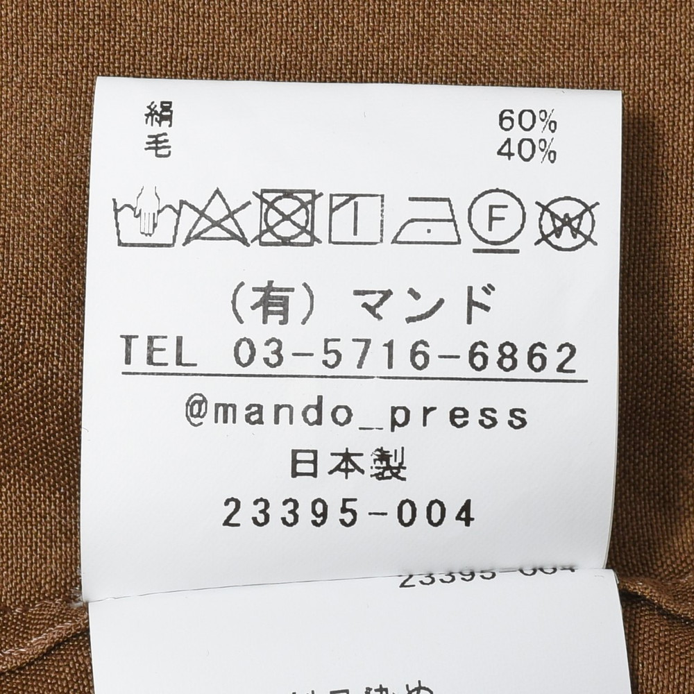 程良く光沢感を持たせたドライタッチの生地にmando(マンド)らしい捻りが効いたデザインが乗ることによって生まれる一着はありそうでないデザイナーズブランドらしい仕上がりに。使用している素材に特徴がある為、デイティールは控えめになっていますが、それでもしっかりとファッションを感じるデザインになっているのは同ブランドならでは。