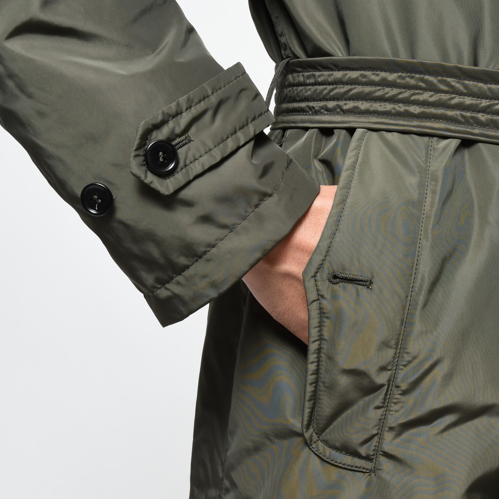 ベーシックなトレンチコートでありながらポリエステルを採用することで軽快さ実用性を付加することに成功、カジュアルスタイルをアップデートしてくれる一着だと思います。