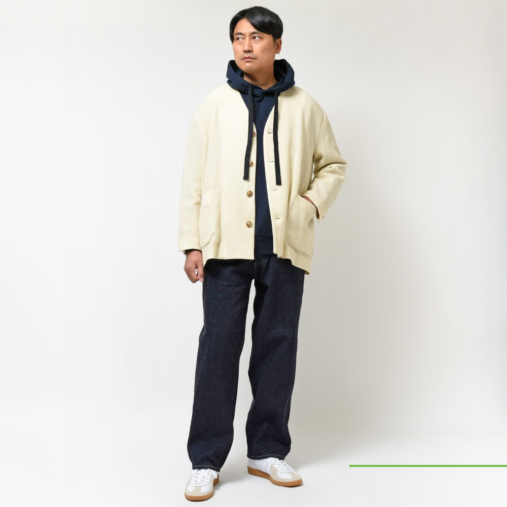 ジャケット、ブルゾン、カーディガンこの3者の魅力を上手く足し引きした様なデザインになっている為、合わせるインナーやパンツによって魅せ方を上手く変化させることが出来る懐の深さも持ち合わせている存在。
