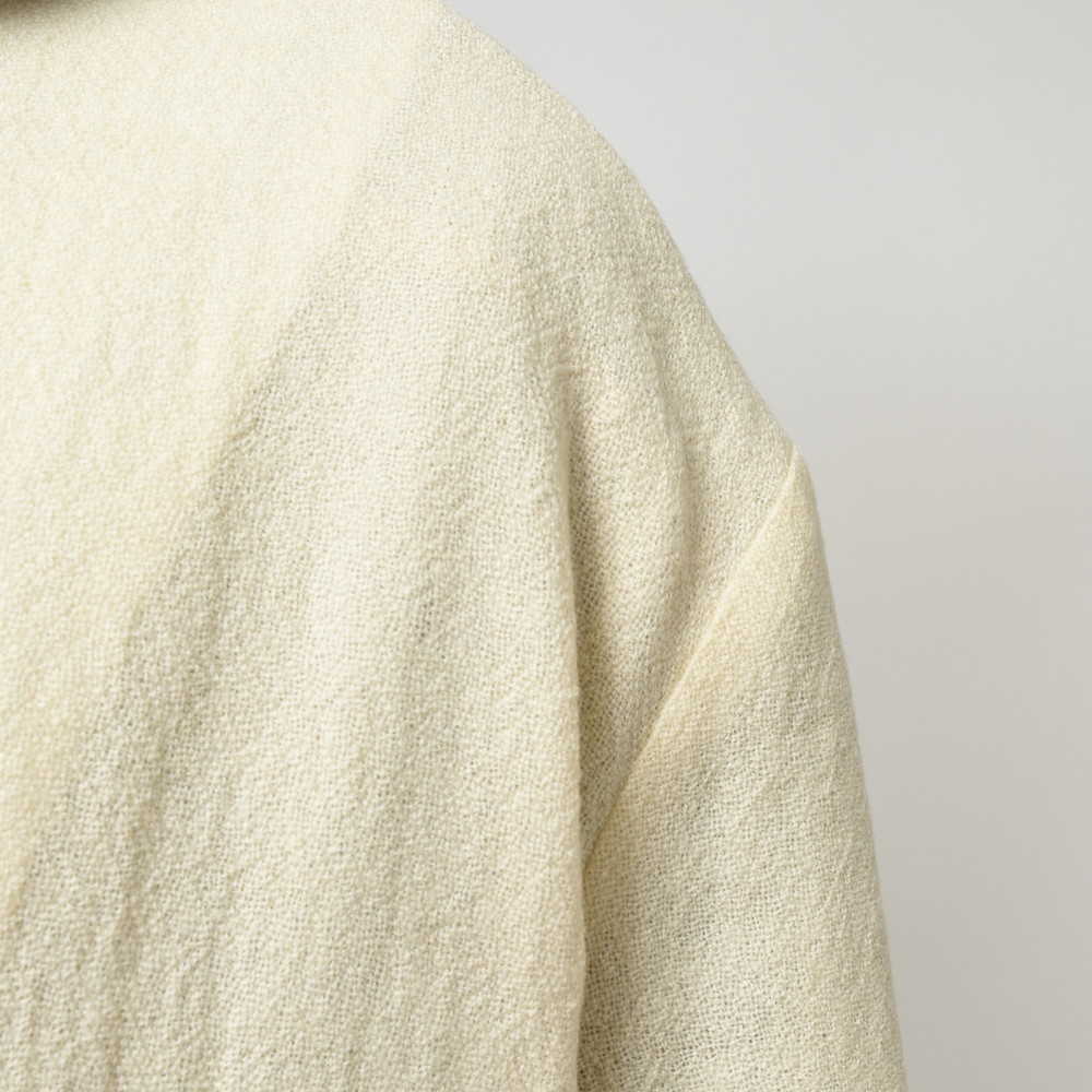 肩の落ち感やゆったりとした身幅、色の雰囲気も含めて非常に柔和なイメージの一着に仕上がっています。