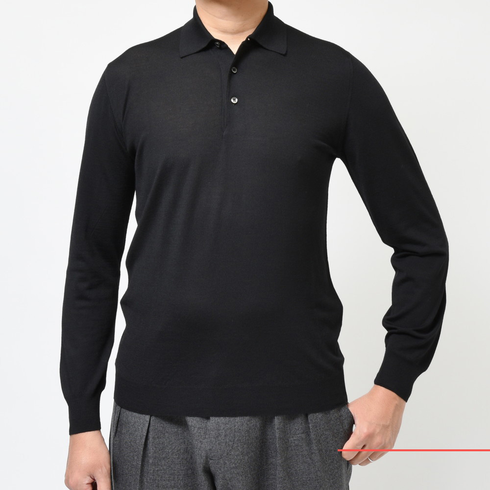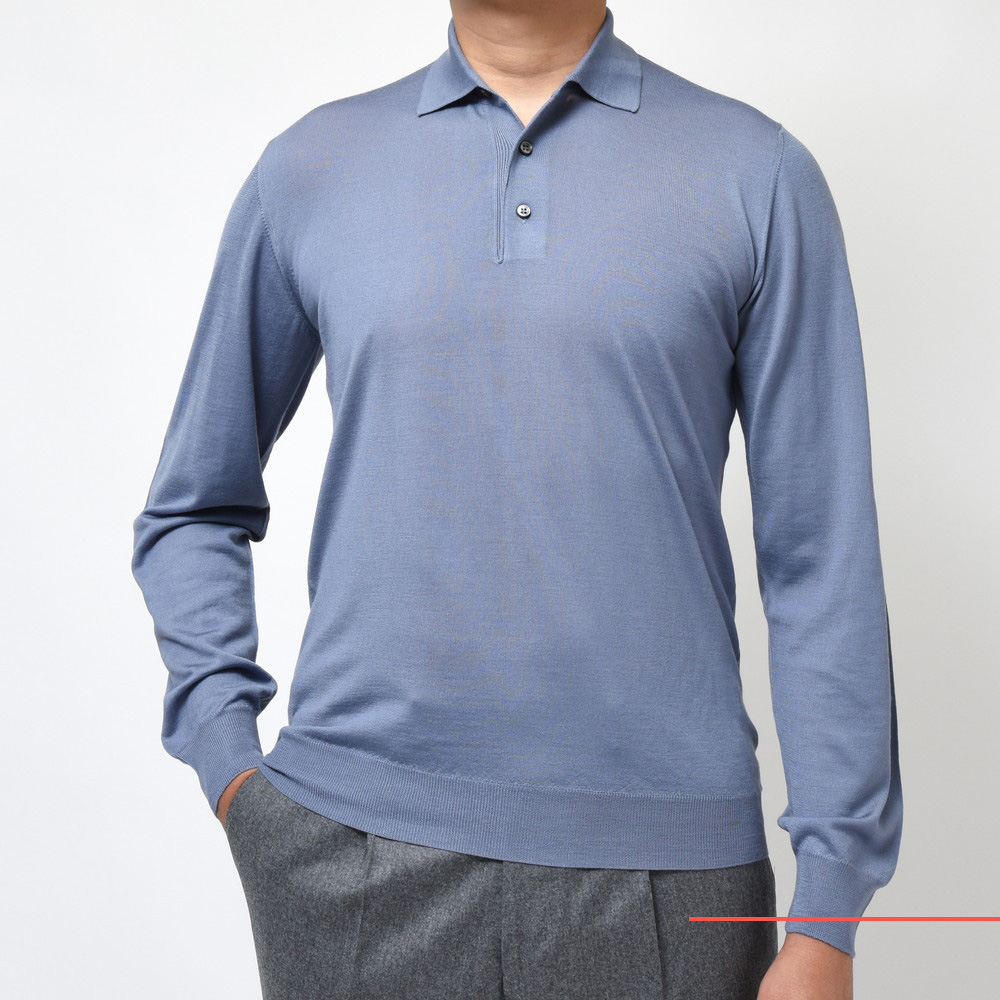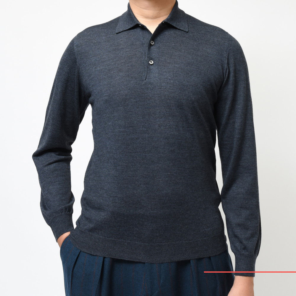 FEDELI(フェデリ)のメリノウールトップレンジであるSUPER140'sハイゲージヤーンを用いたニットコレクション、こちらはクラシカルなロングスリープポロタイプです。
