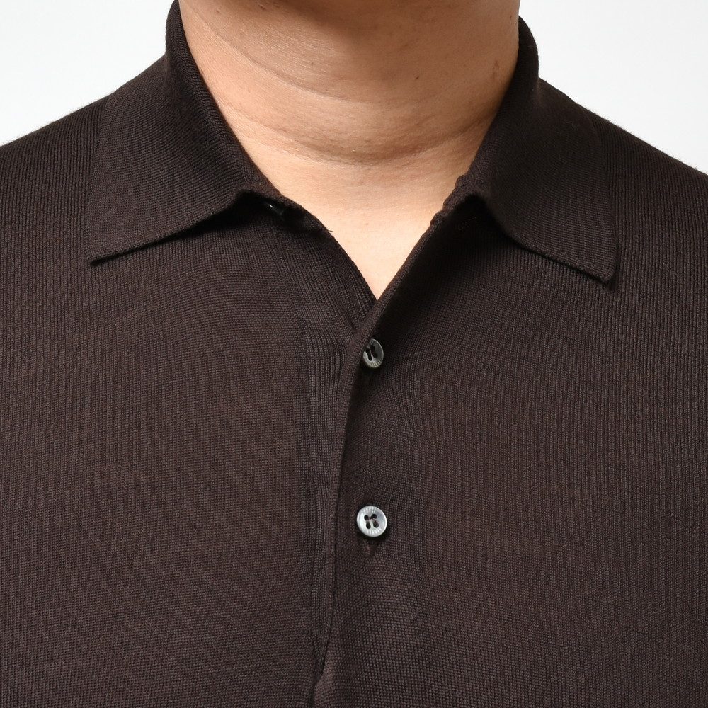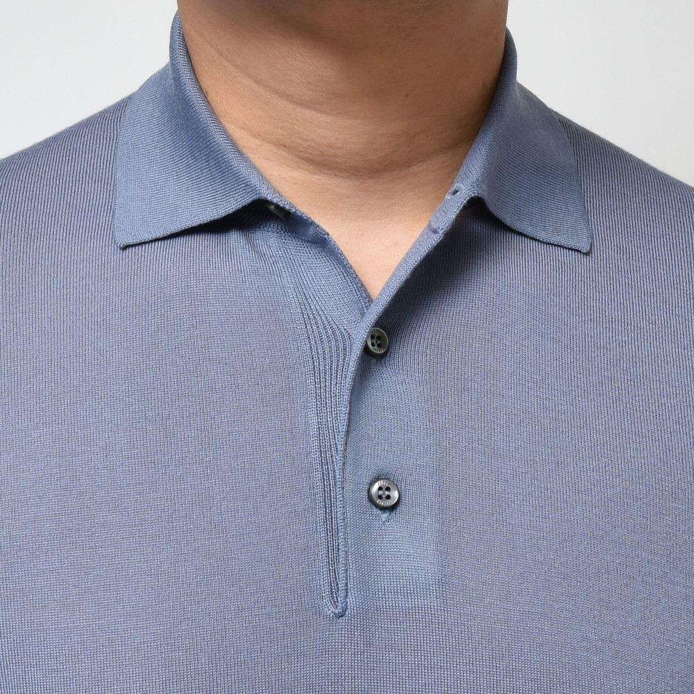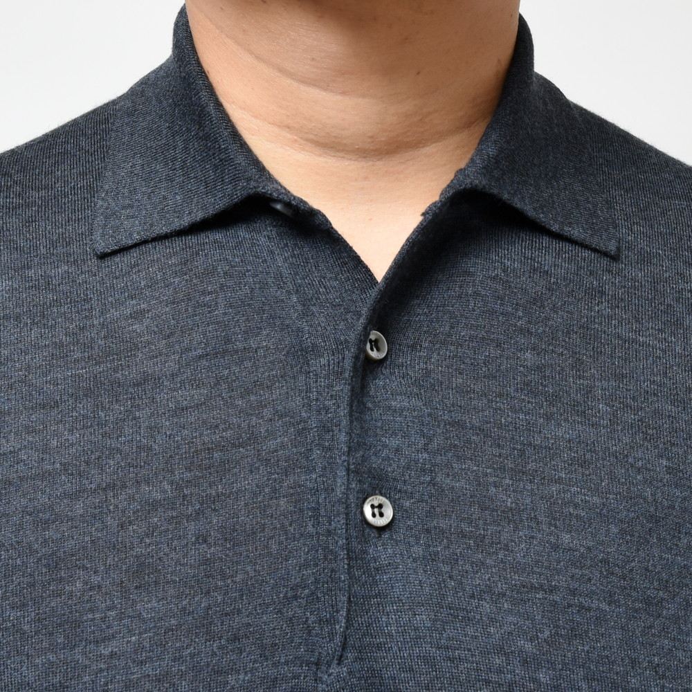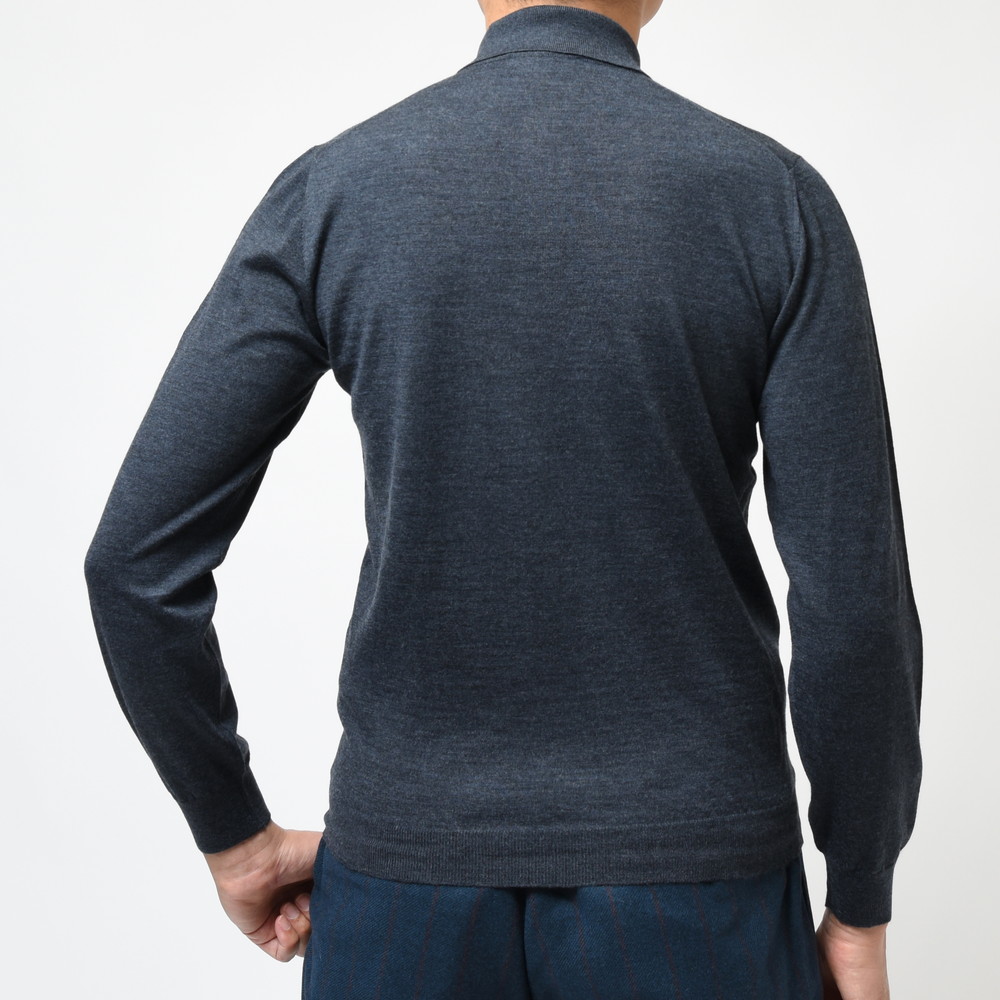 FEDELI(フェデリ)のメリノウールトップレンジであるSUPER140'sハイゲージヤーンを用いたニットコレクション、こちらはクラシカルなロングスリープポロタイプです。