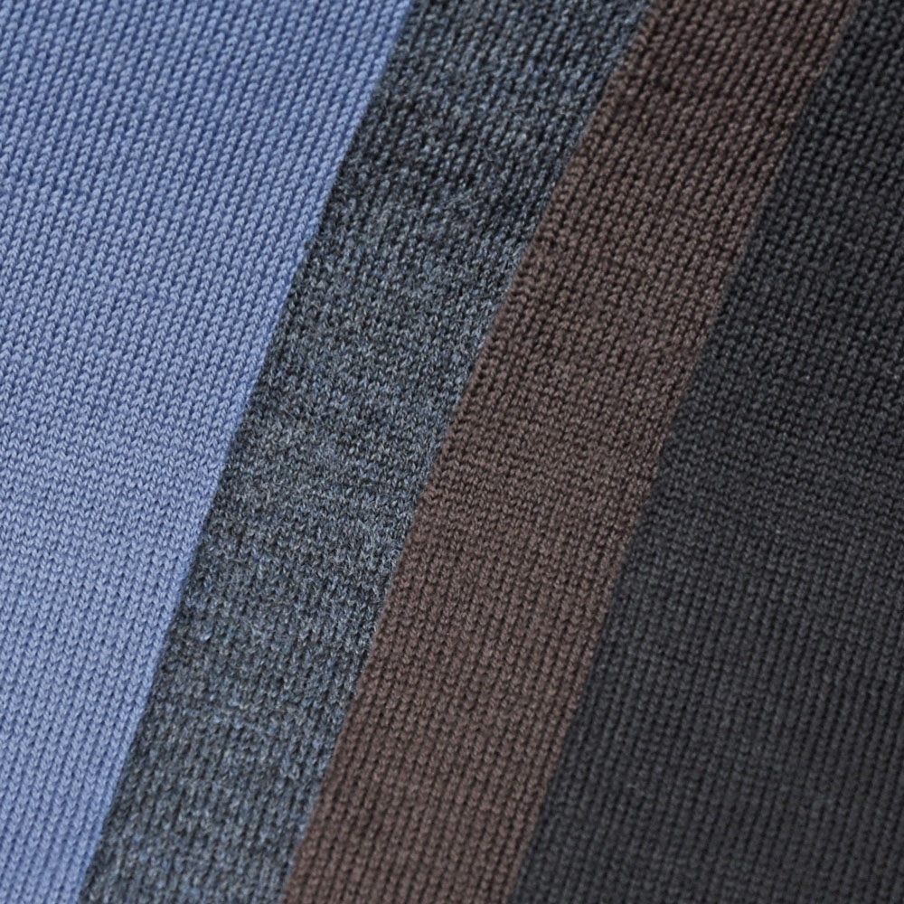 このレベルのニットを編めるファクトリーは、イタリアでもほんの一握りだと思います。発色も素晴らしく、プライスに見合ったオンリーワンの魅力がありますね。
