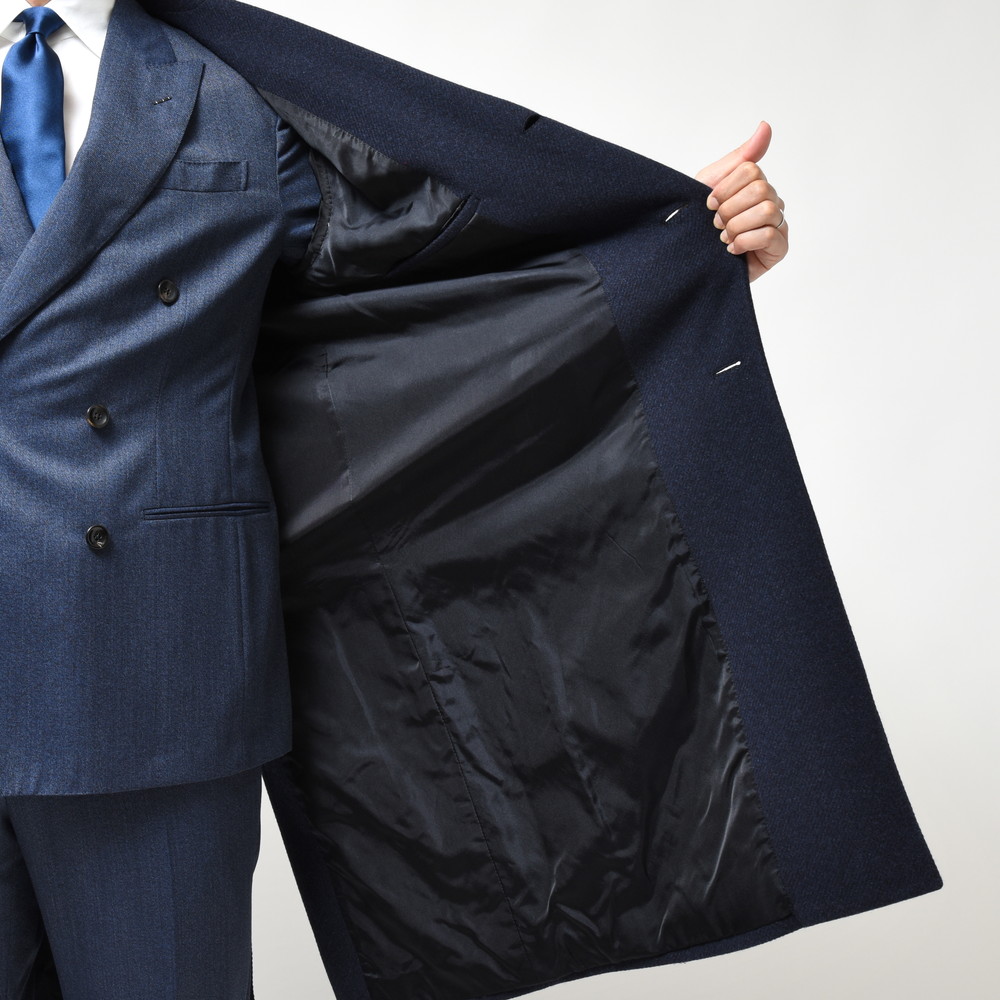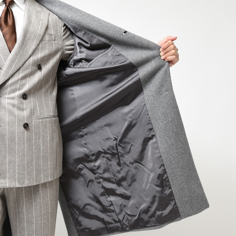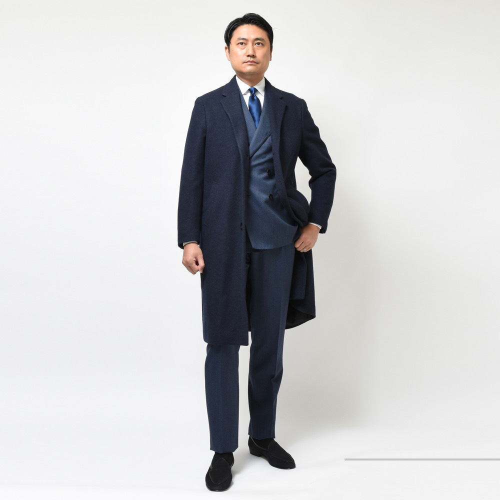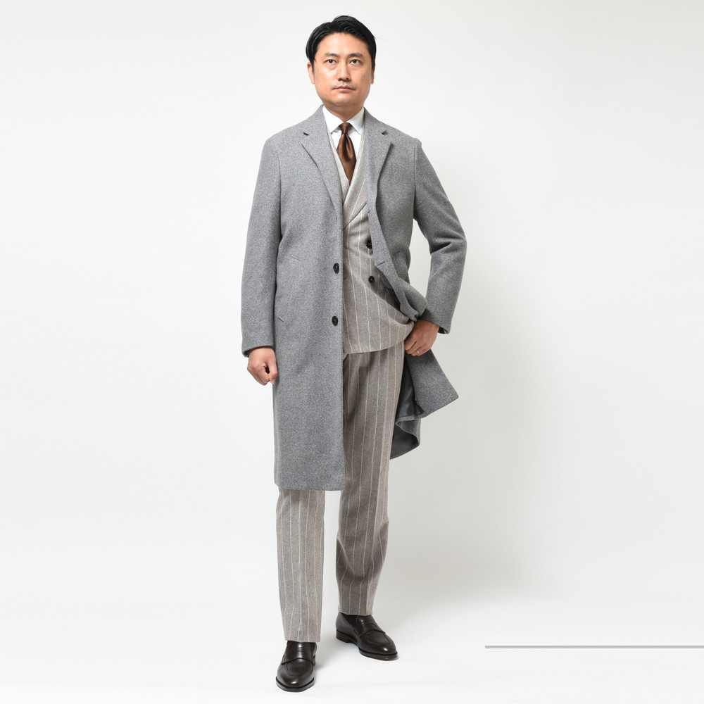 GIANFRANCO BOMMEZZADRIの手掛けるデザインの中で、かなりモード寄りなスタイルのコートですが、これがクラシックなスーツやジャケットと相性が良いわけでして、本当に驚きました。