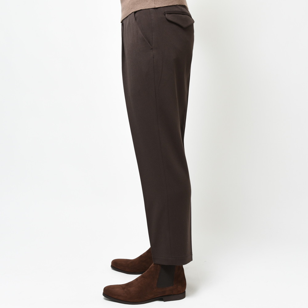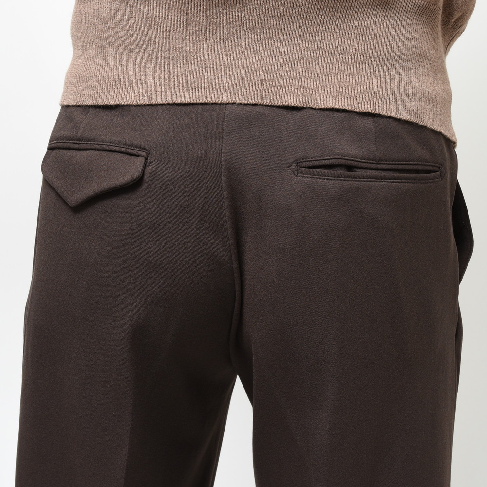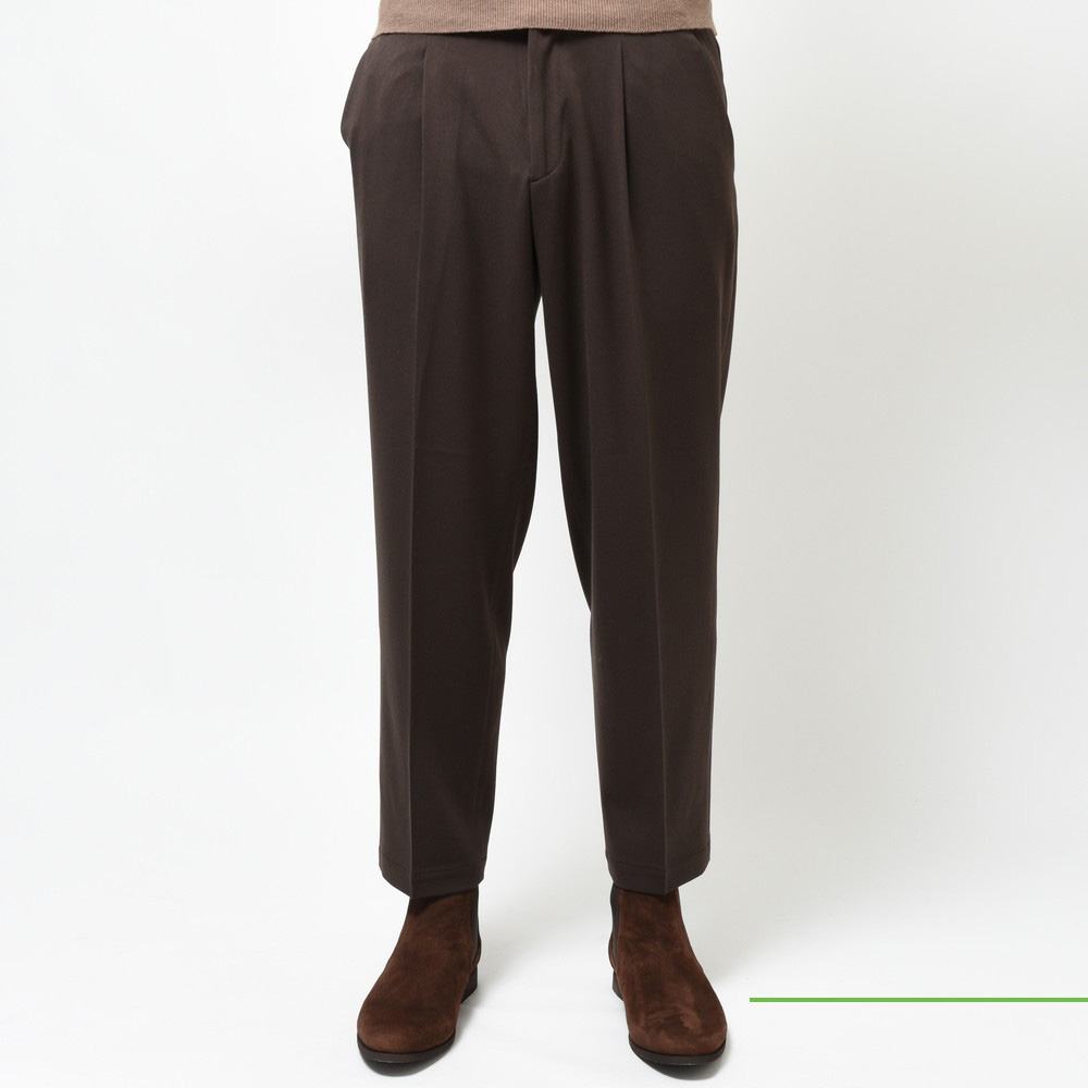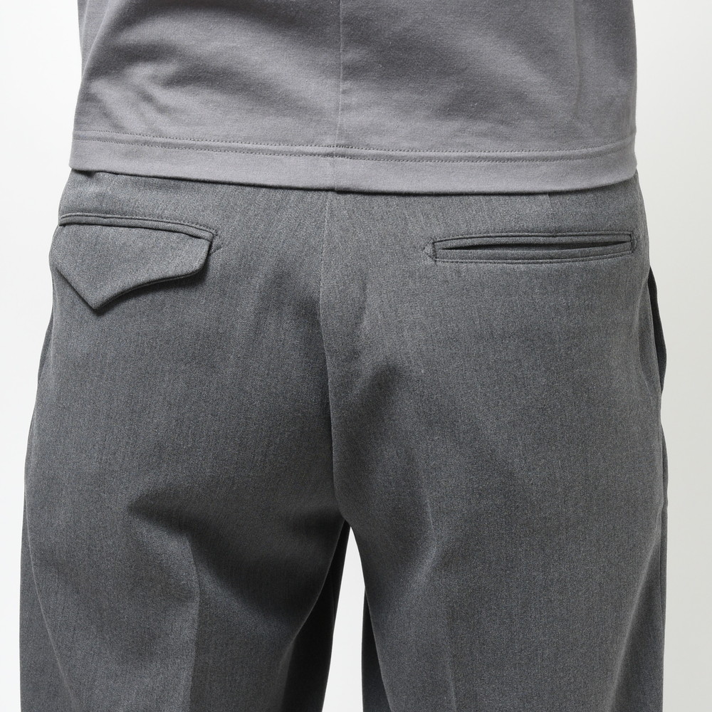 柔らかなジャージ素材を採用しる事で穿き心地をより快適に、且つ見栄えはウールライクな上品さも備えている為、見栄えの面でも高いレベルを保持しています。