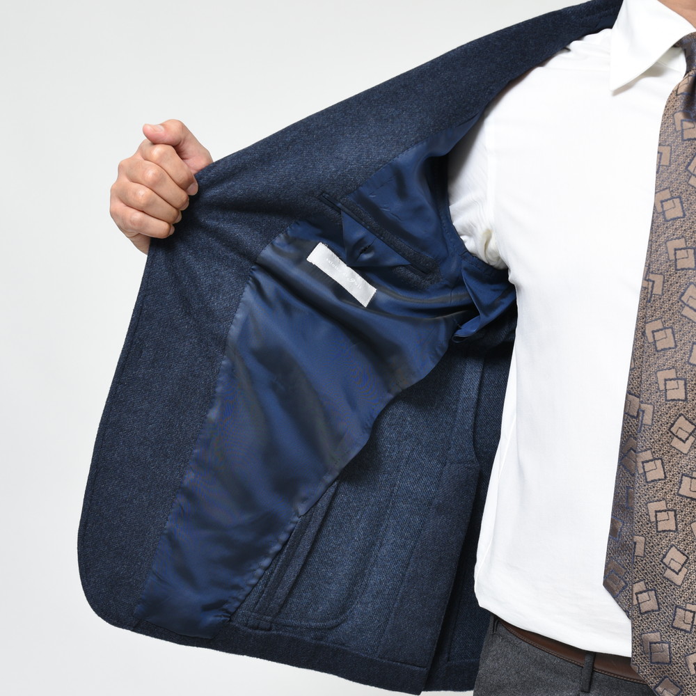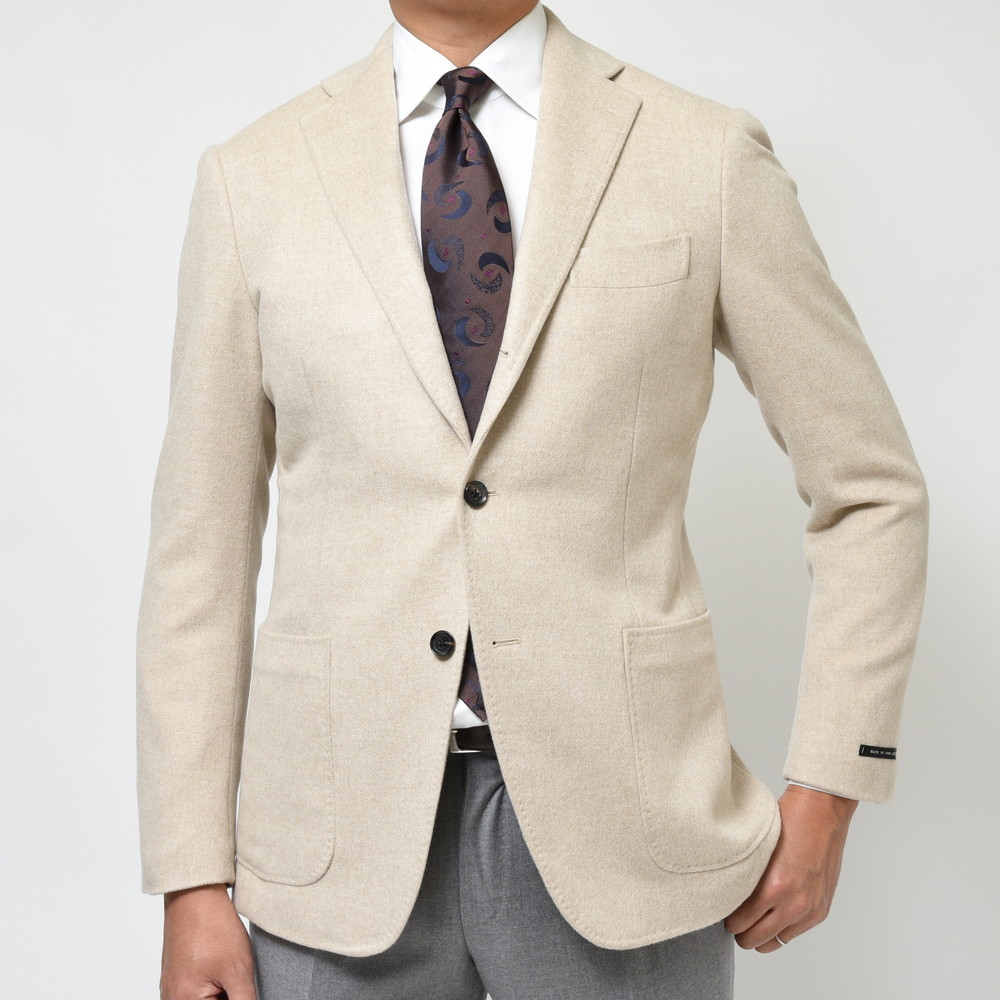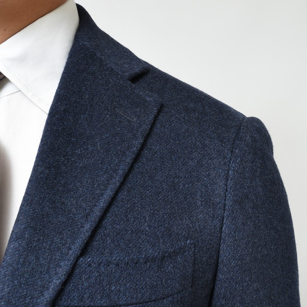 カシミアで目付け470g/m。このクラスの生地はまずジャケットでは見られません(通常ジャケットは200~300g/m前後)ので、非常に価値のある仕上がりになっていると思います。