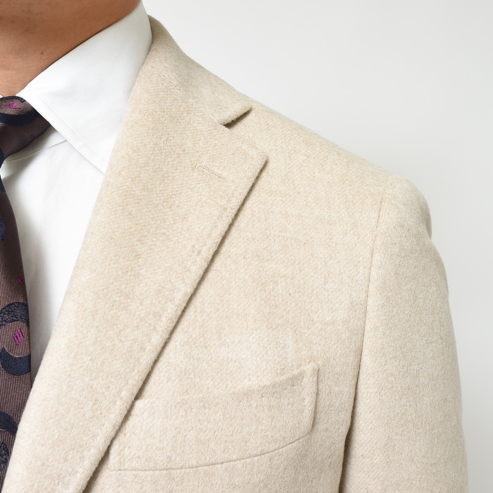 最高ランクの内モンゴル産のカシミアを天然アザミで起毛させフィニッシュした業界のリーダー的コート素材をなんとジャケットに用いてみました。