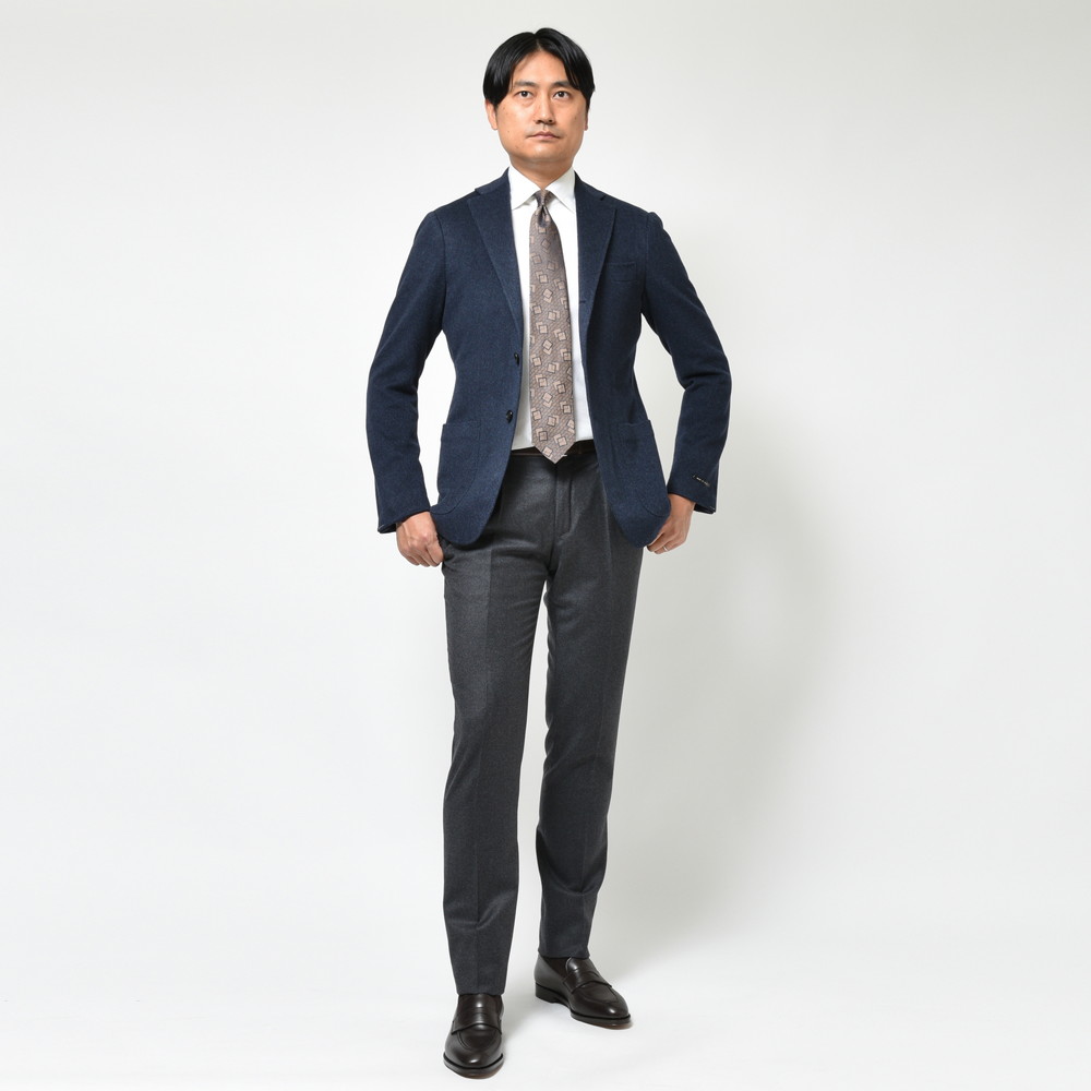 一般的にはコートを仕立てるために用いられるクオリティですが、この風合い、タッチを終日感じることが出来るのも一つ大きな魅力。是非最高のカシミアジャケットを感じて頂ければと思います。