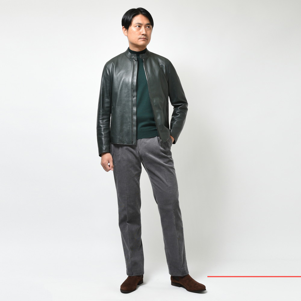 そもそもシングルライダースはデザインがすっきりとしているためドレスライクな着こなしにも最適です。