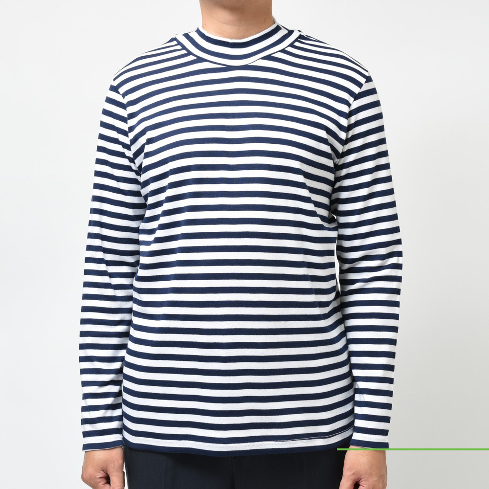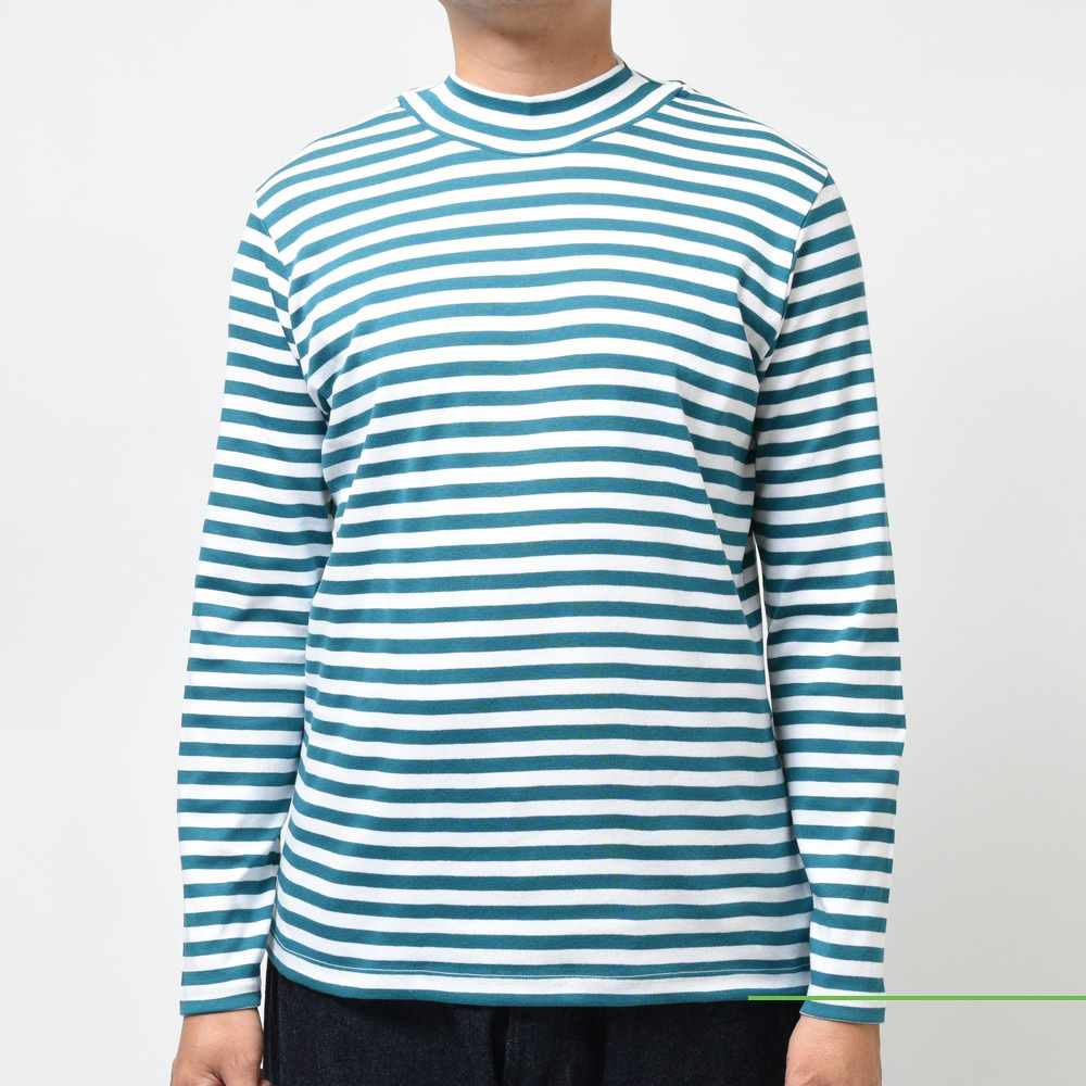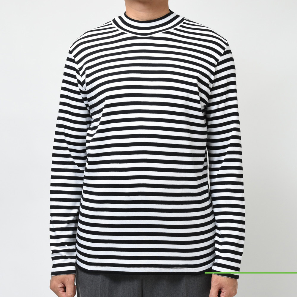ロングスリーブのモックネックカットソーにボーダーの組み合わせ、フランス的な要素を感じさせながらも実際にはモダンなムードで着用出来るというバランス感は本当に流石です。