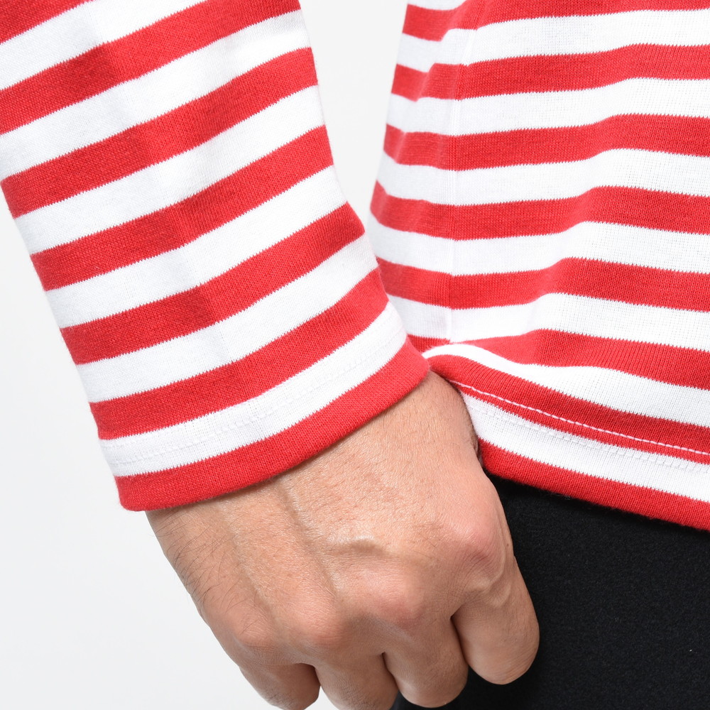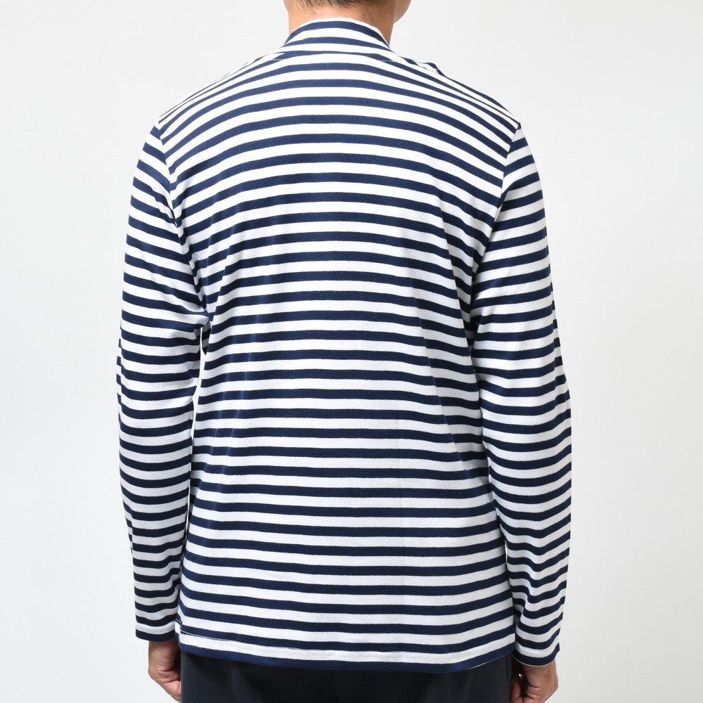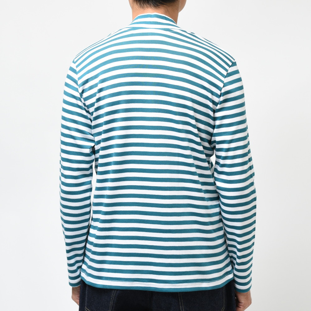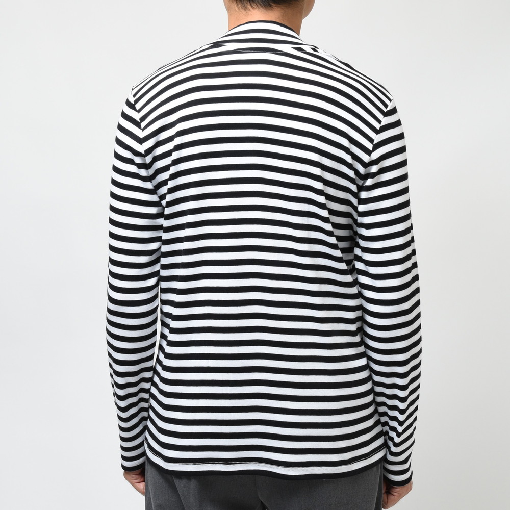 ロングスリーブのモックネックカットソーにボーダーの組み合わせ、フランス的な要素を感じさせながらも実際にはモダンなムードで着用出来るというバランス感は本当に流石です。