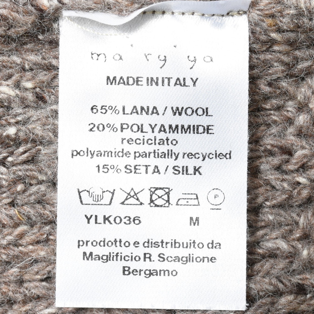 長年取り扱いのあるma'ry'ya(マリア)の中でも特に印象深いシルエットですね。袖をシャープにしつつ身幅はややゆとりを持たせたような感じにしていまして、編地に関しても袖切り替えになっています。さらに着丈はコンパクト、と言うよりもやや短めに設計。これが定番的、と言えるのがma'ry'ya(マリア)の凄い所でしてデザイナーズらしさが光る一着と言えます。