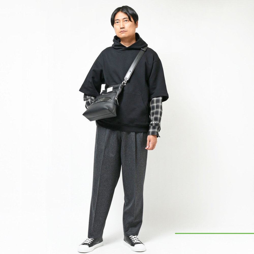 MARNI(マルニ)らしさ溢れるスウェットとチェックシャツのコンビネーションフーディ。今シーズンの同ブランドではブラック×ホワイトの色使いが多用されてまして、ウェアのみならず小物でも散見されるものになっています。