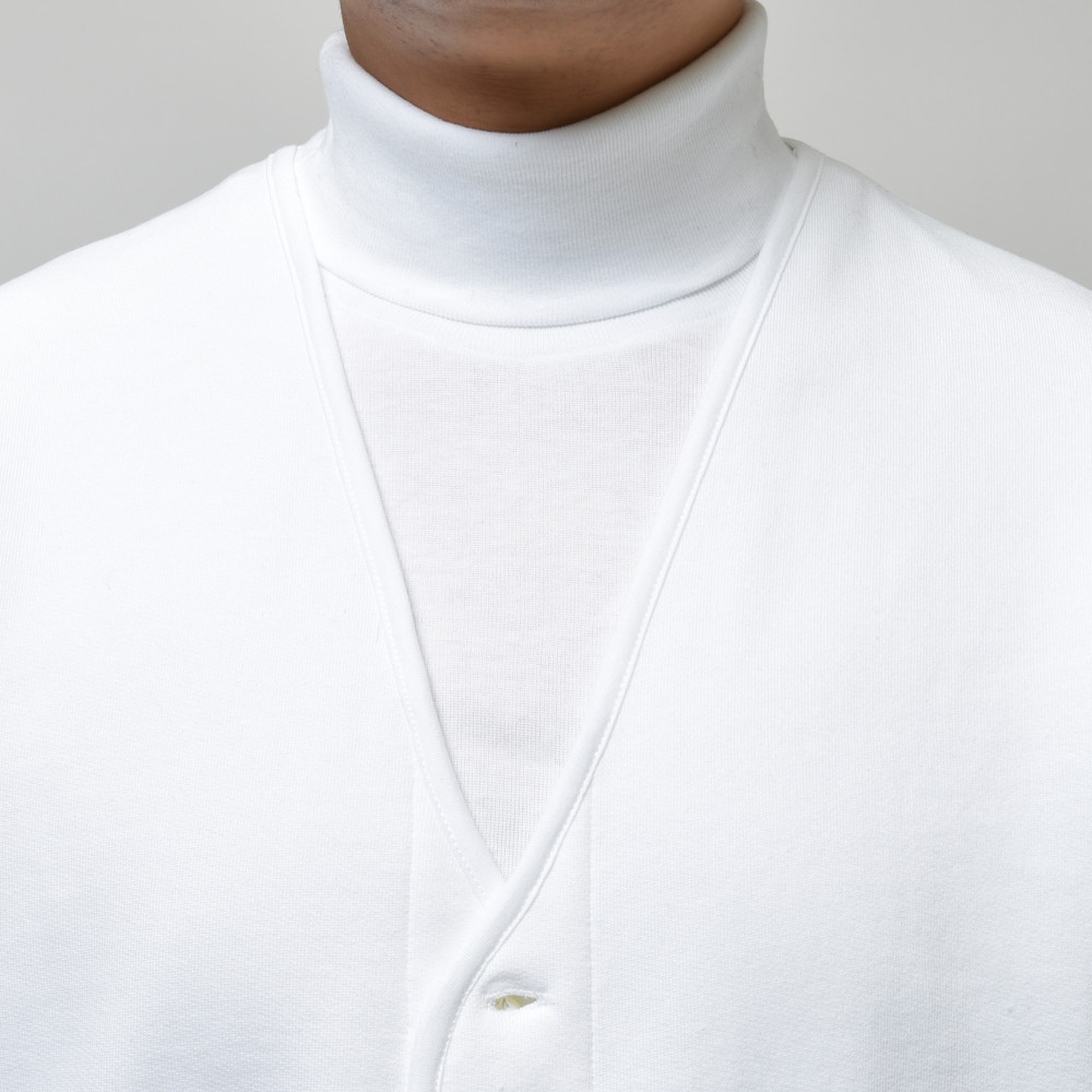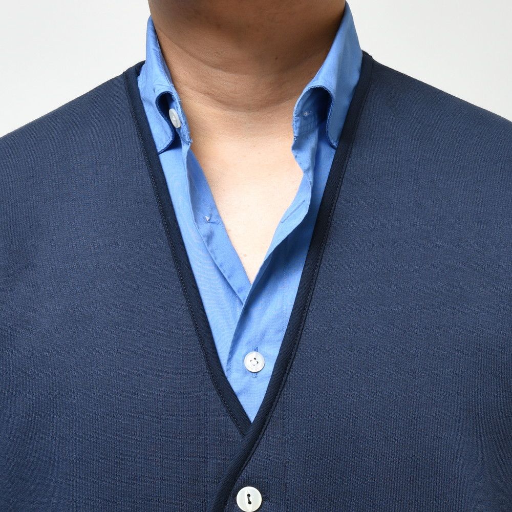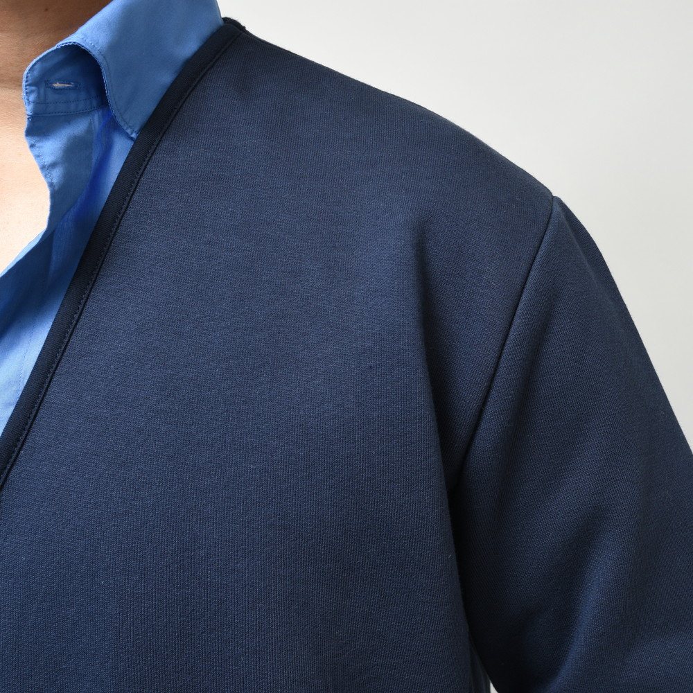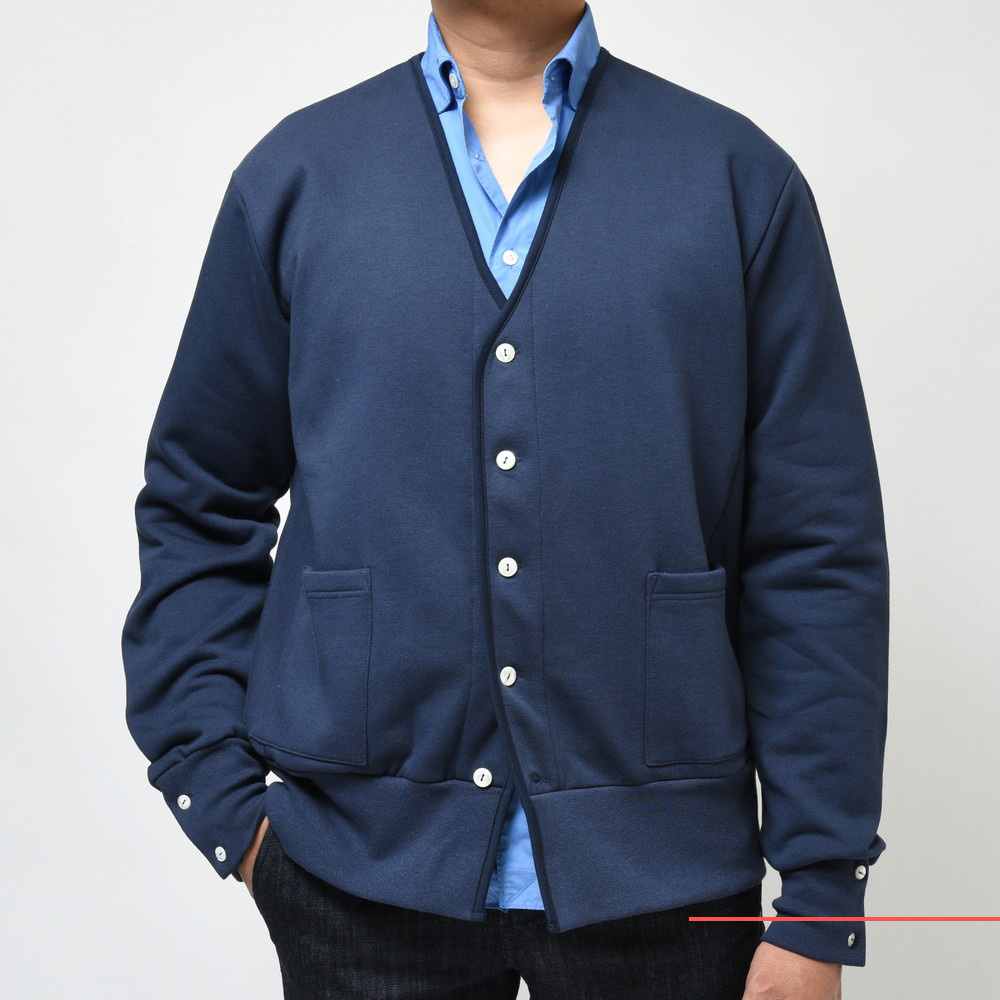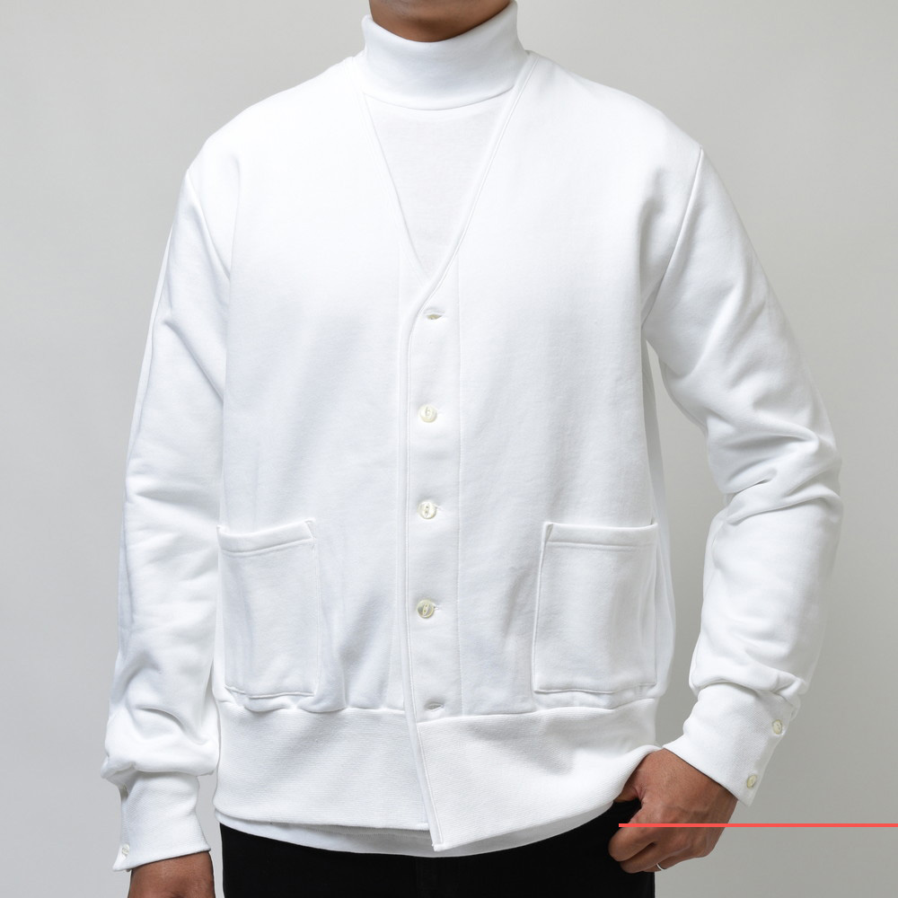 コットン素材のカーディガンはスムース生地が多く、こういった少しボリュームを持ったスウェットタイプは珍しいかもしれません。