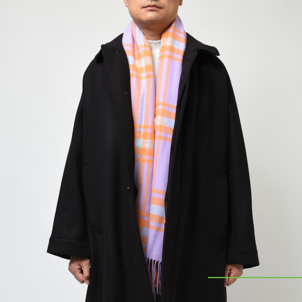 ライトパープルのようなライラックのようななんとも言えない絶妙な色味に凄く惹かれますね。既に色々とベーシックなストールやマフラーをお持ちであれば次なる一手として是非選んで頂ければと思います。