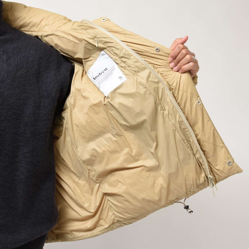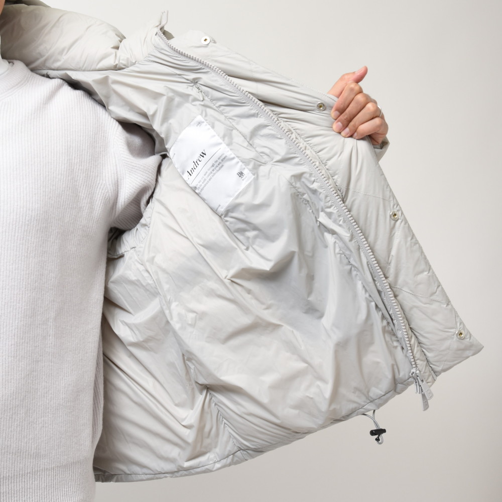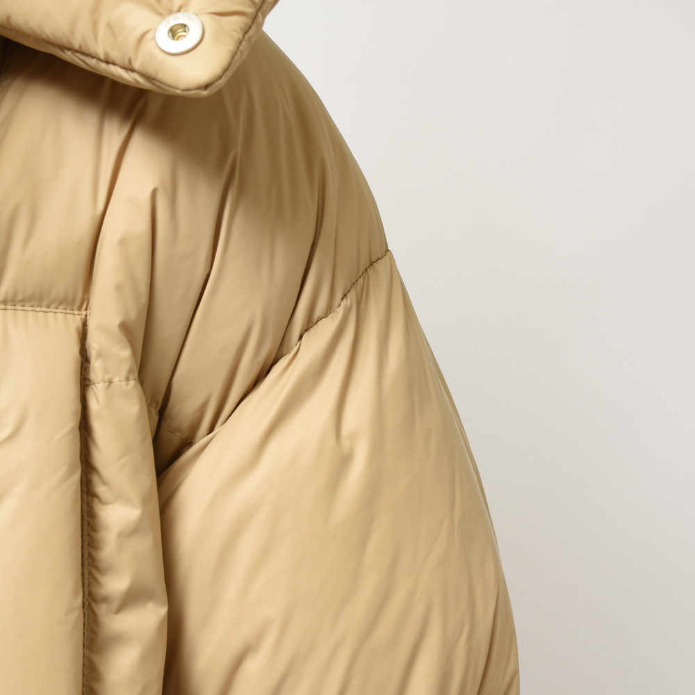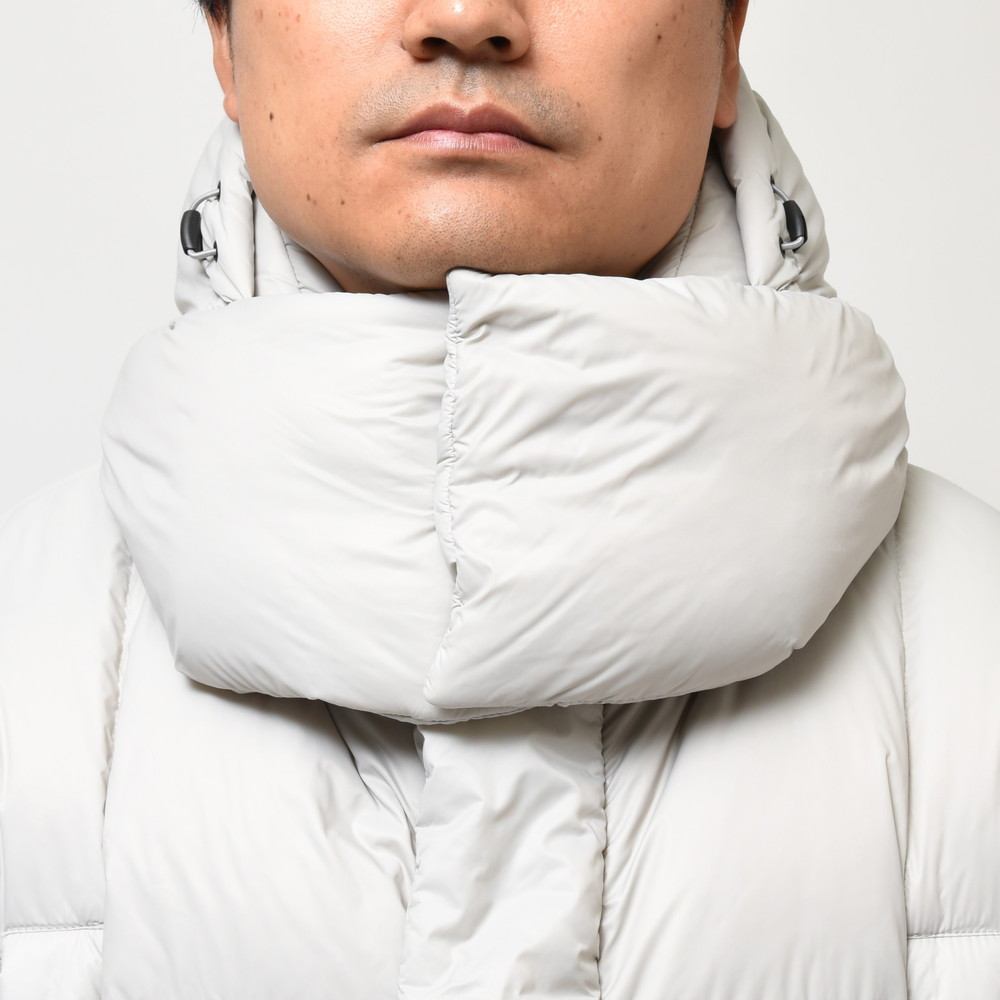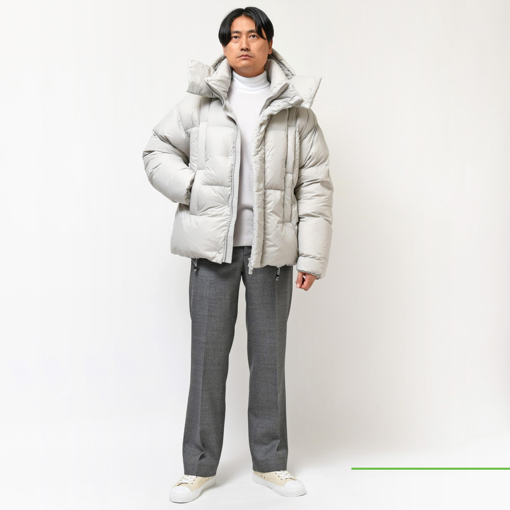 素材はやや鈍い光沢を放つマットなナイロン生地を採用、少し滑りのあるようなタッチがラグジュアリーとこなれ感を加速させているのもポイントでしょうか。これまでダウンはスマートに着るのが大人の嗜みでしたが、その考えの牙城を崩すカウンター的ブランドです。